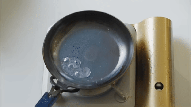 たっぷり熱を蓄えているため、水を入れると水滴が踊ります。