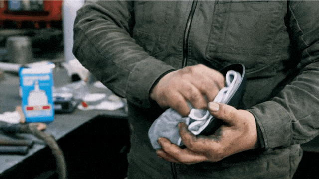 布で磨き・ツヤ出し。使っているのは食用油です。