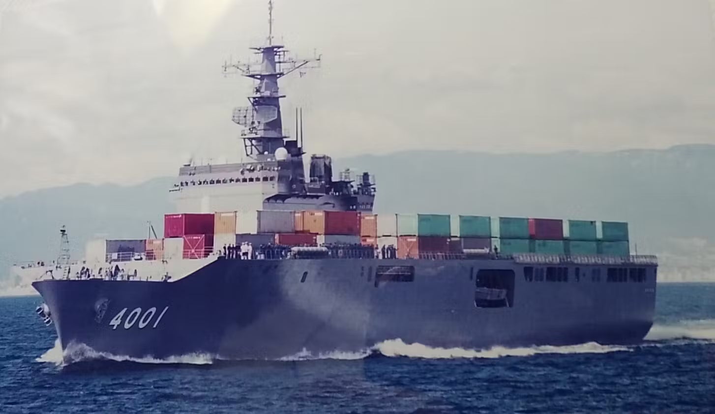 トルコに向かうプレハブを搭載したコンテナを載せた自衛艦