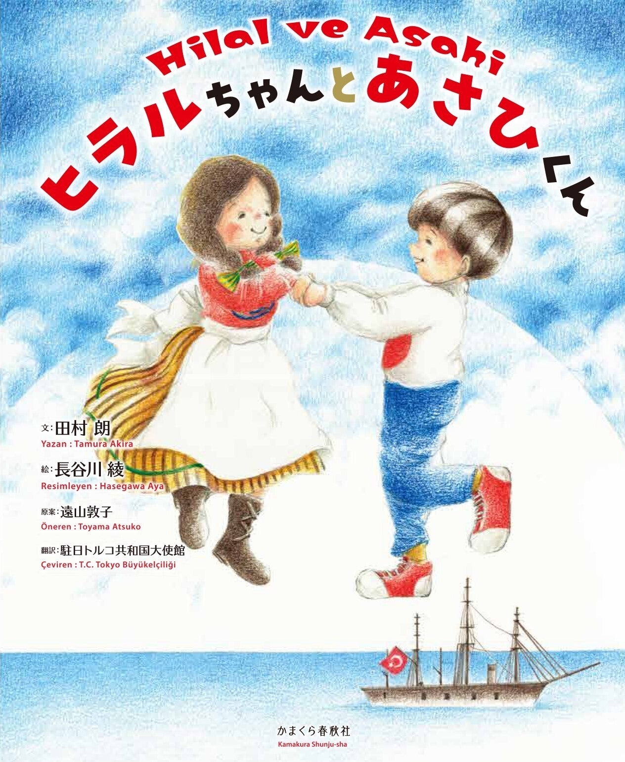 本の登場人物の名前である「あさひ」と「ヒラル」は、日本語で「朝日」とトルコ語で「新月」をあらわす単語です。日本国旗の日の丸とトルコ国旗の新月を象徴しています。