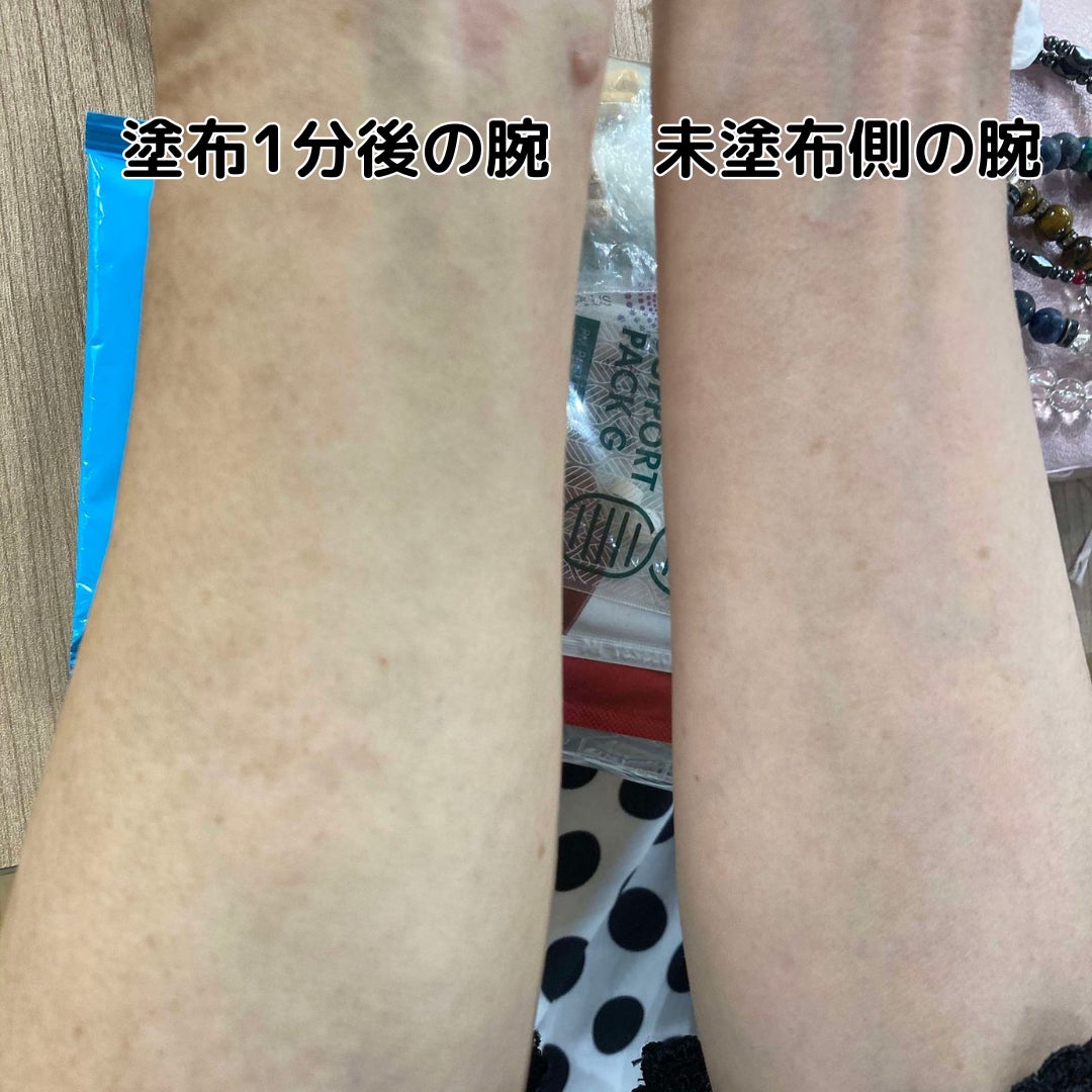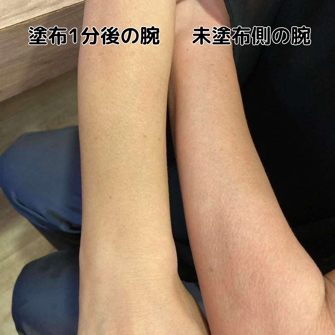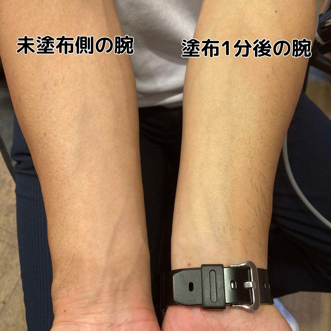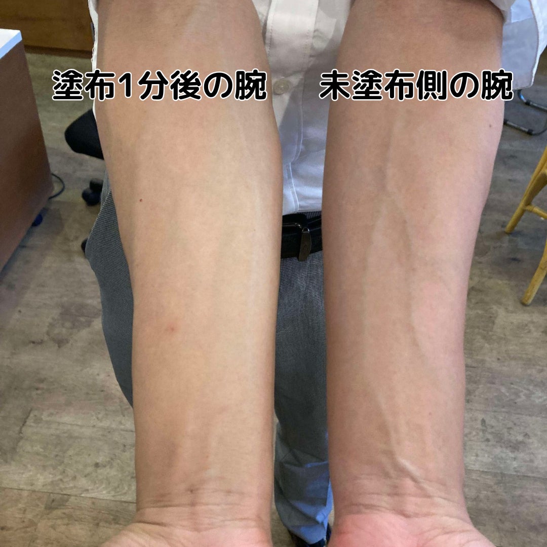 片腕にだけ、女性の羊水を再現した化粧水(商品名未定)を塗ってもらい待つこと1分!