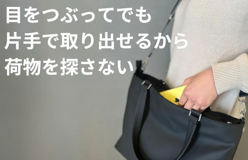 ファスナーを開かなくても、バッグを広げなくても"そこ"に手をのばすだけ。
