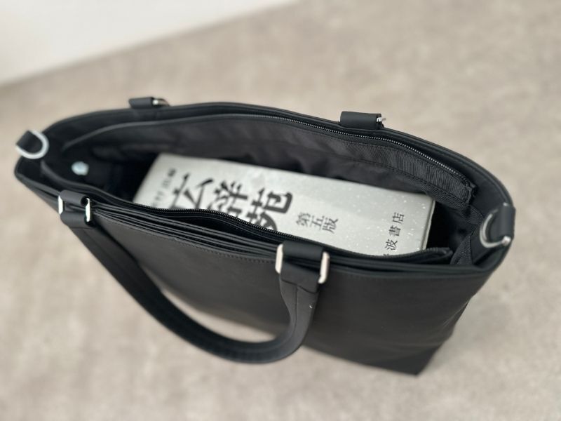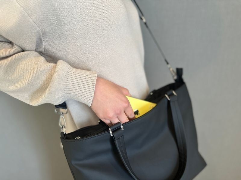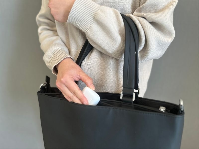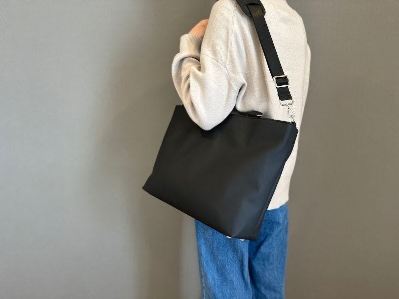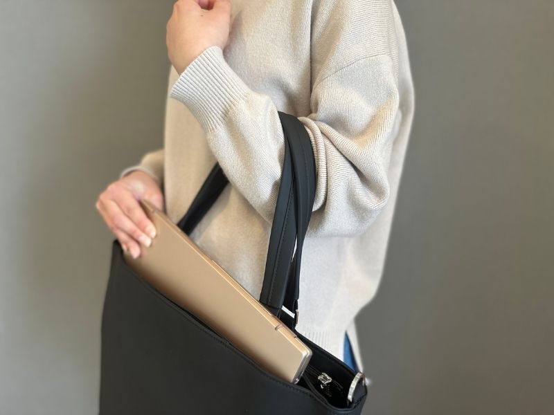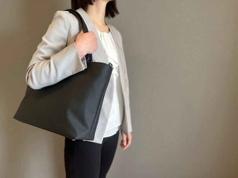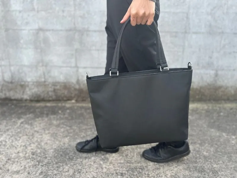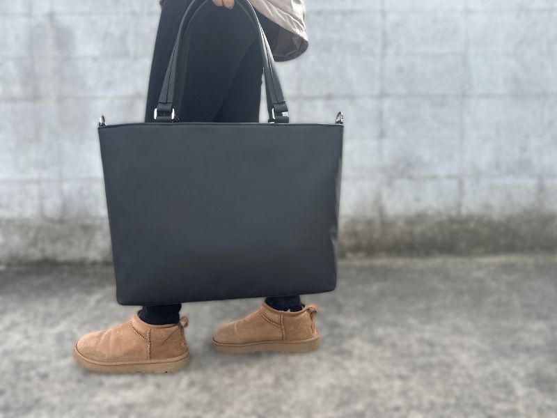 トートバッグは肩にかけられるけど、手持ちすると取っ手が長すぎて階段でぶつける、引きずるなんてことも。