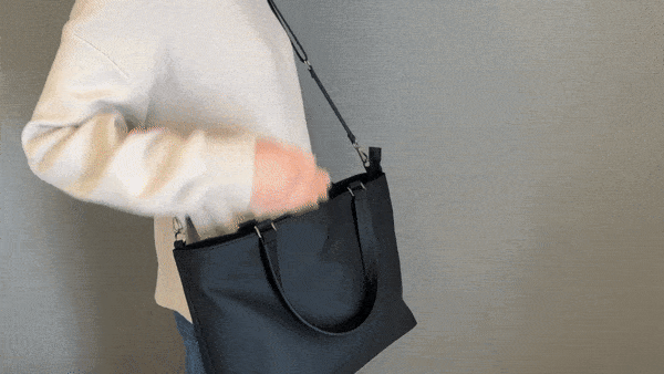 取っ手とは別に、片掛け・斜め掛けができるストラップを。