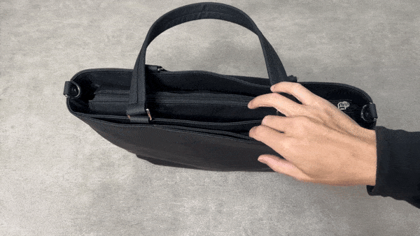 バッグを片手で持ちながらでも、肩にかけたままでも素早く簡単にアクセスできます。