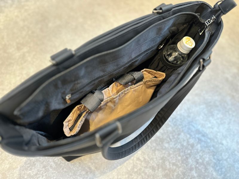 長さが34cm以内の折りたたみ傘ですと、メインポケットもしくはドリンクポケットに入れて持ち歩くことができます。
