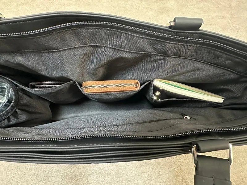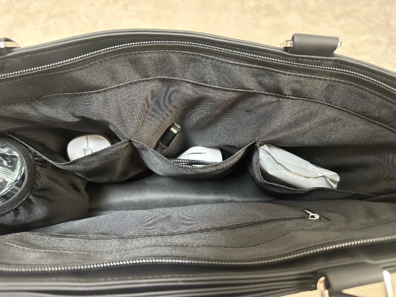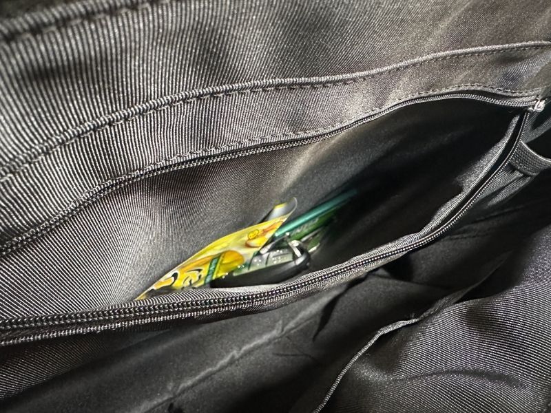 メインポケットには小物スペースの向かいにファスナー付きのスマートポケットが。