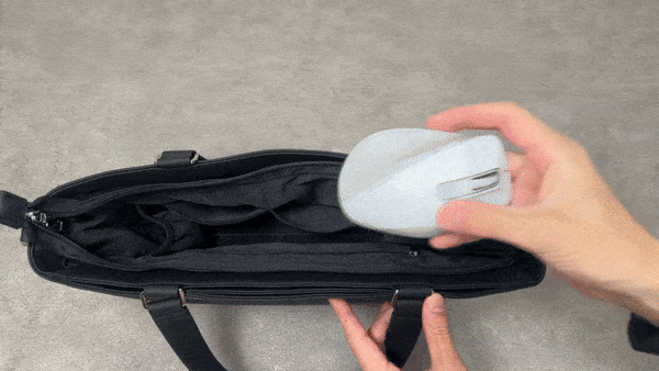 見た目が気になるときは内側に折って隠せば、すっきり持ち歩けます。