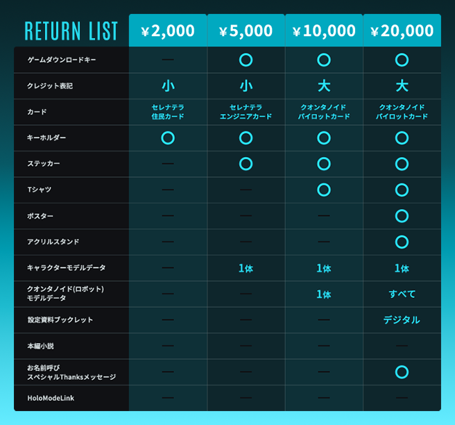 本プロジェクトを応援してくださった皆さんへ、よりゲームを楽しんでいただけるようなリターンをご用意いたしました。