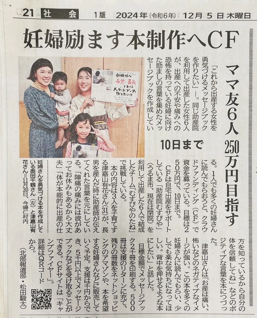 しかも、社会面!けっこう大きめで、プロジェクトページのQRコードまで、掲載いただき、ありがたいです♪