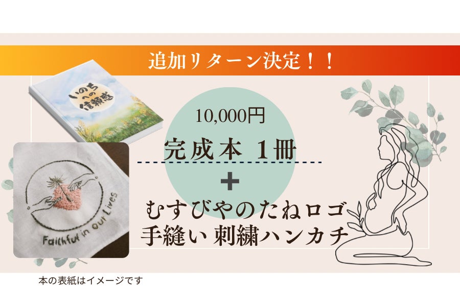 追加リターン返礼品のご紹介です!【刺繍作家 星野沙也加さん・むすびやのたねロゴ 手作り刺繍ハンカチ】ハンカチに、むすびやのたねのロゴを手縫い刺繍してくださったのは、子育てママの刺繍の会やワークショップを開催しているほしのさやかさん。看護師として、産後ケアのスタッフにも従事されていますさやかさんは、ご自身の妊娠出産の経験も通して、たくさんの人が、お産を大事にすることや、お腹の赤ちゃんだけでなく、自分も大事にして、それが、周りの人も大切することにも繋がっていくのが、とても素敵なことであり、ぜひ、多くの人に、本を受け取ってほしい。たくさんの人に、この活動を知ってほしいと感じてくださっていて、手に取る方や使う方が、むすびやのたねを思い出してくださったり、「お産」や、「お産をした人生」を応援する気持ちが伝わったらいいなぁという想いから、クラファンのリターンとして、手縫い刺繍を申し出てくださいました❤︎忙しい子育ての合間に、一針一針、むすびやのたねを紡ぐ思いで、作ってくださっています!Instagramアカウント刺繍作家 Embroidery artist |星野沙也加***・なるべく実物に近い色に写るよう撮影を心がけておりますが、端末や画面設定などにより、実物と若干色合いが変わって見える場合がございます。・ひとつひとつ手作りのため、仕上がりには個体差があります。写真と実際の品が、若干異なる場合もございます。ハンドメイド特有の「表情」としてお楽しみください。・お洗濯についてご家庭で水洗い(手洗い)可能です/洗濯の際はネットを使用してください/乾燥機のご使用はお避け下さい***