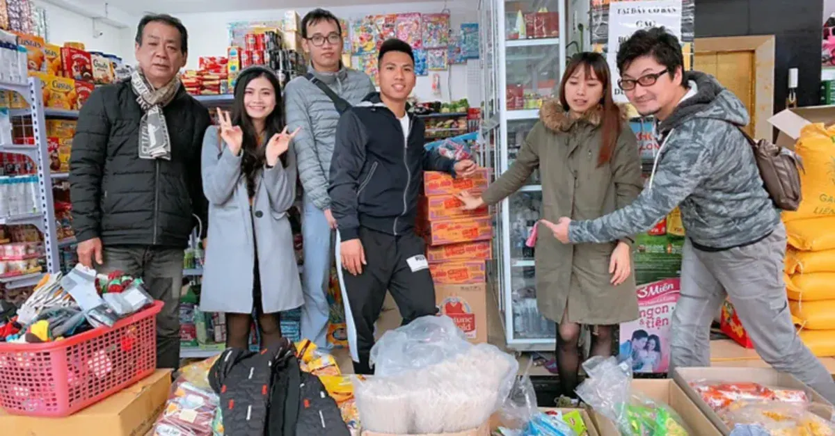 ベトナムから来て頑張っている若者たちにも配りました。
