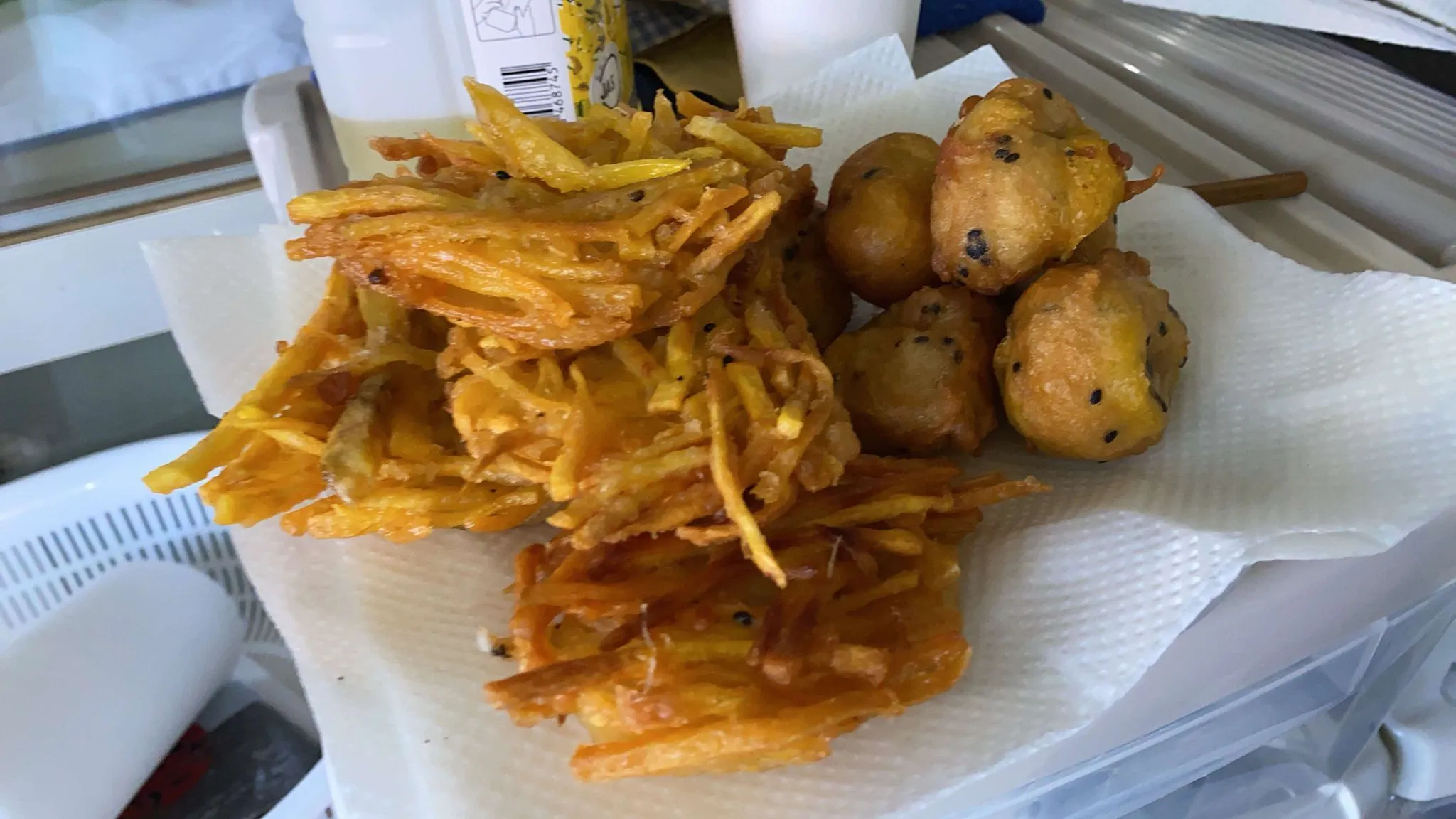頂いた芋でベトナム人のフォンさんが、ホットケーキのようなお菓子(ベトナムの揚げサツマイモクレープ「バイン・クアイ・ラーン・ラン"Bánh khoai lang rán"」)を、作ってくれて大好評でした。