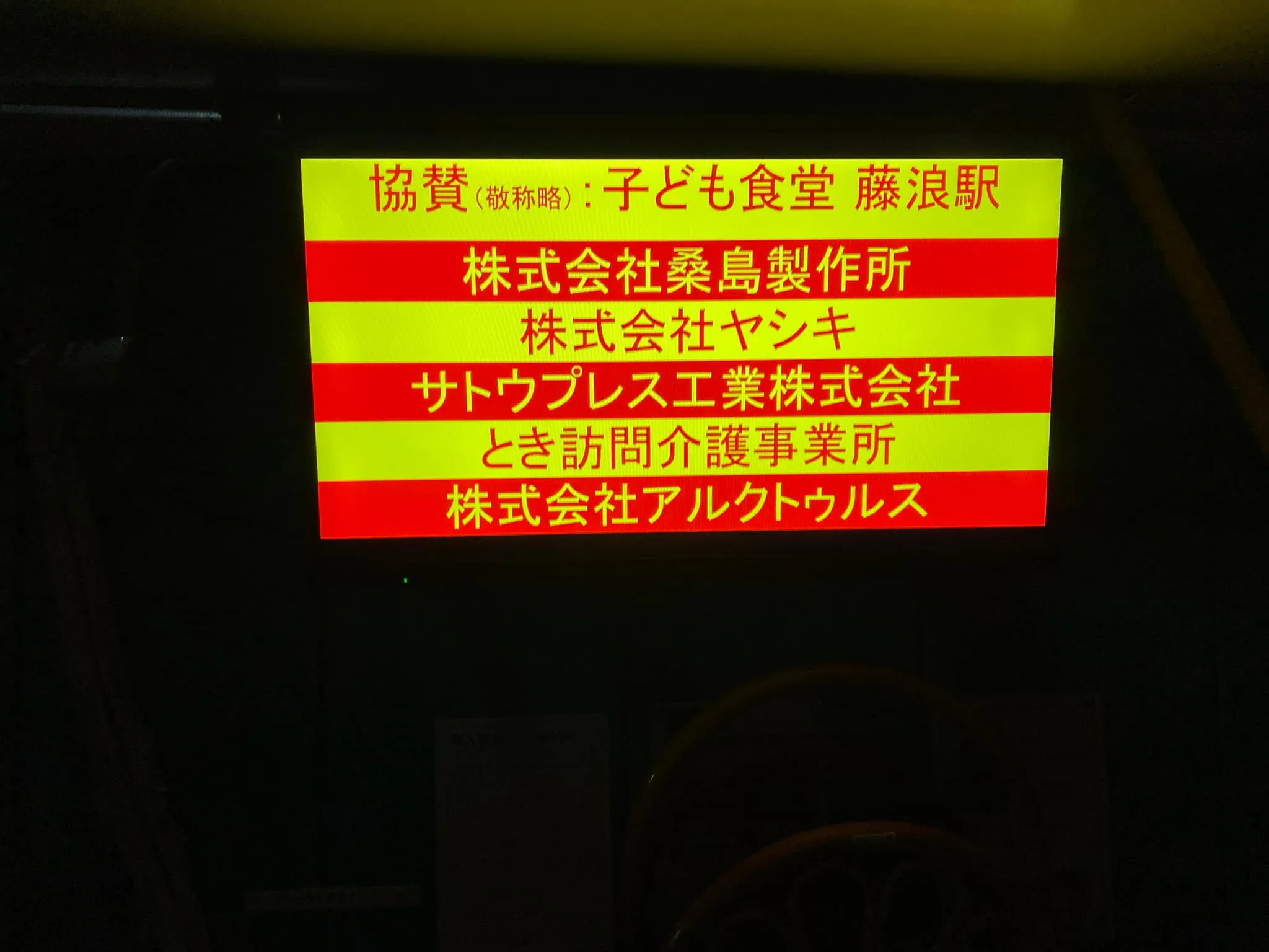 協賛して頂いた皆様には感謝しております。協賛企業様はデジタルサイネージにて表示させて頂いております。
