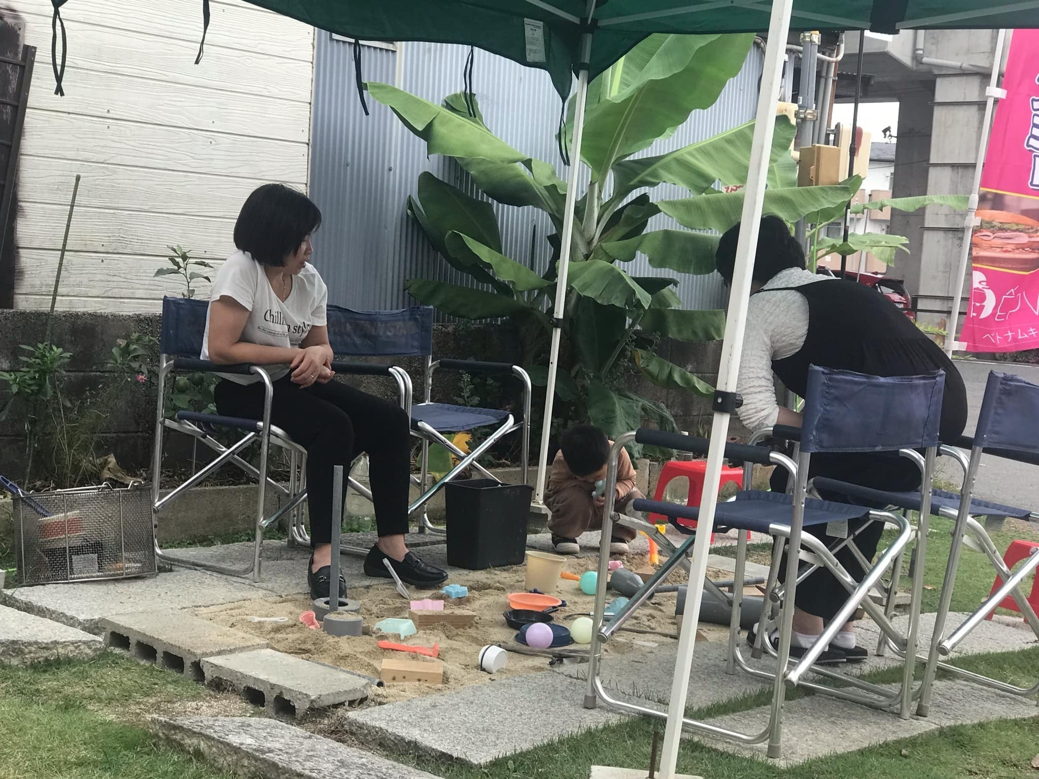 子どもが遊べる砂場スペースと、子ども食堂の2階で、ボール遊びが安全に出来る場所を作りました。紙皿をやめてプラスチックのお皿やスプーンなど、用意しました。