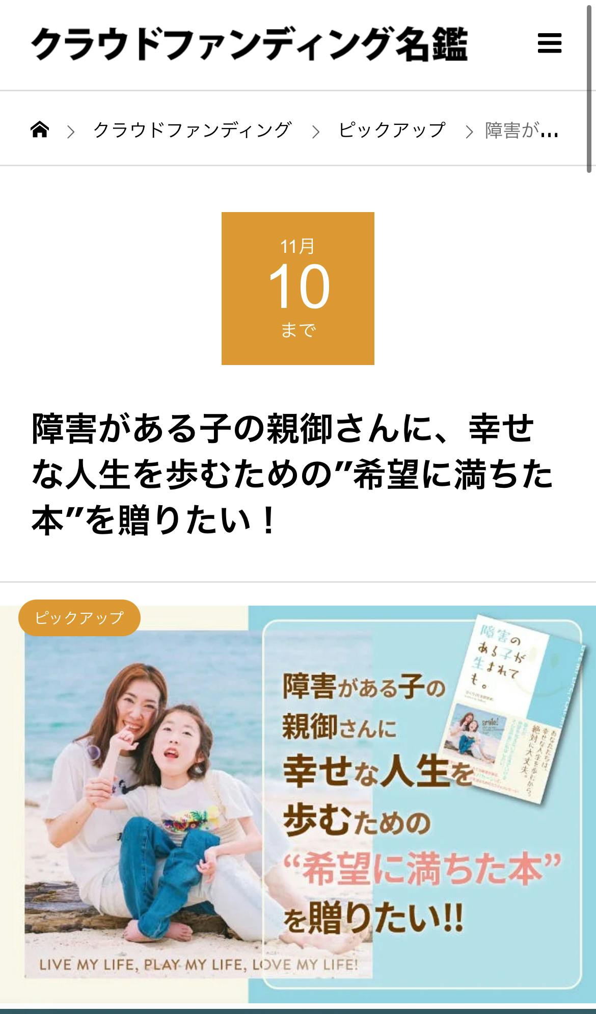 昨夜、HPの問い合わせから「クラウドファンディング名鑑に無料で掲載しませんか?」と担当者さんから届き、先ほど掲載されるというものすごいスピードです。