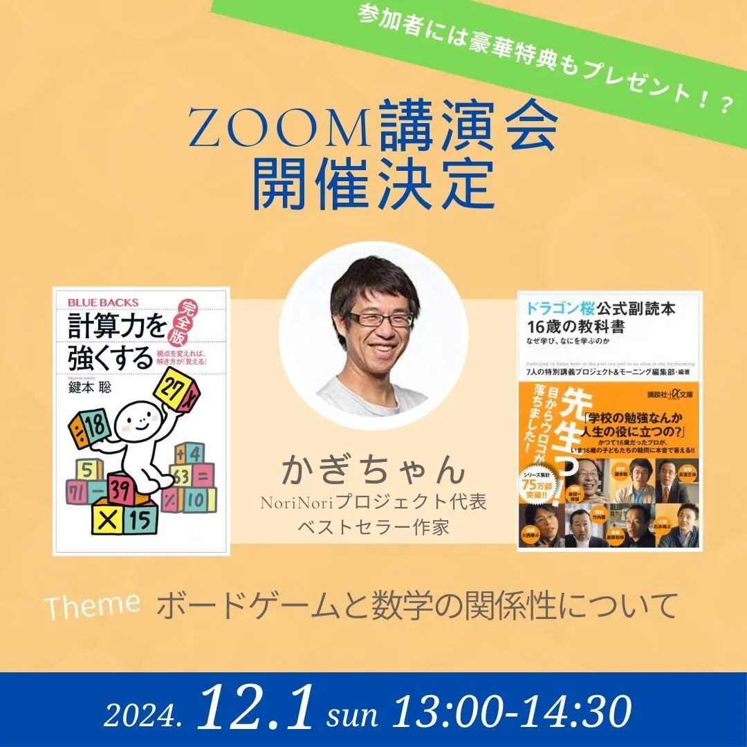 2024/11/17 12:00皆さまこんにちは。NoriNoriプロジェクトの新田です。今回はご報告があります!!なんと、11/25(月)に「フリースペースたまりば」さんにお邪魔させて頂くことになりました!!!朝の「おはスタ(おはよう、スタディ)」という時間を使って体験していただくことになっております!!世代的におはスタ世代なので、とても名前が好きです(笑)当日は、1020だけでなく他の知育玩具も一緒に体験して、こども達と楽しもうと思っています!!これからも算数が苦手・嫌いな子ども達が、少しでも減らして算数好きが増えるような活動をしていきたいと思います!! もっと見る