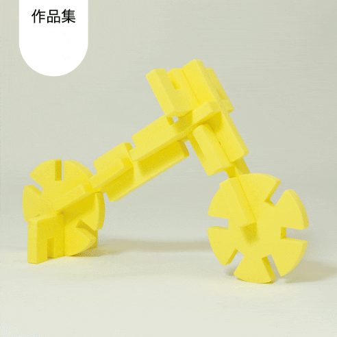 緻密に計算された6種類のパーツ。それぞれのパーツに互換性があるため、組み立てられるものは無限大。素材に使用しているEVAはスポンジのように柔らかいので、小さい子どもでも安心して遊べ、組み立てた時にはしっかりと組み上がる頑丈さです。パーツのサイズや厚みにもこだわっており、小さな子どもから大人まで、どんどん組み立てていくことができます。