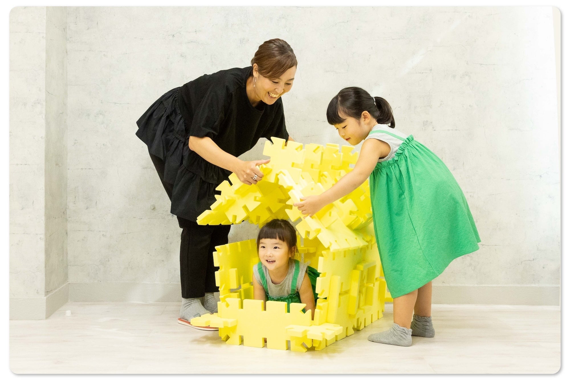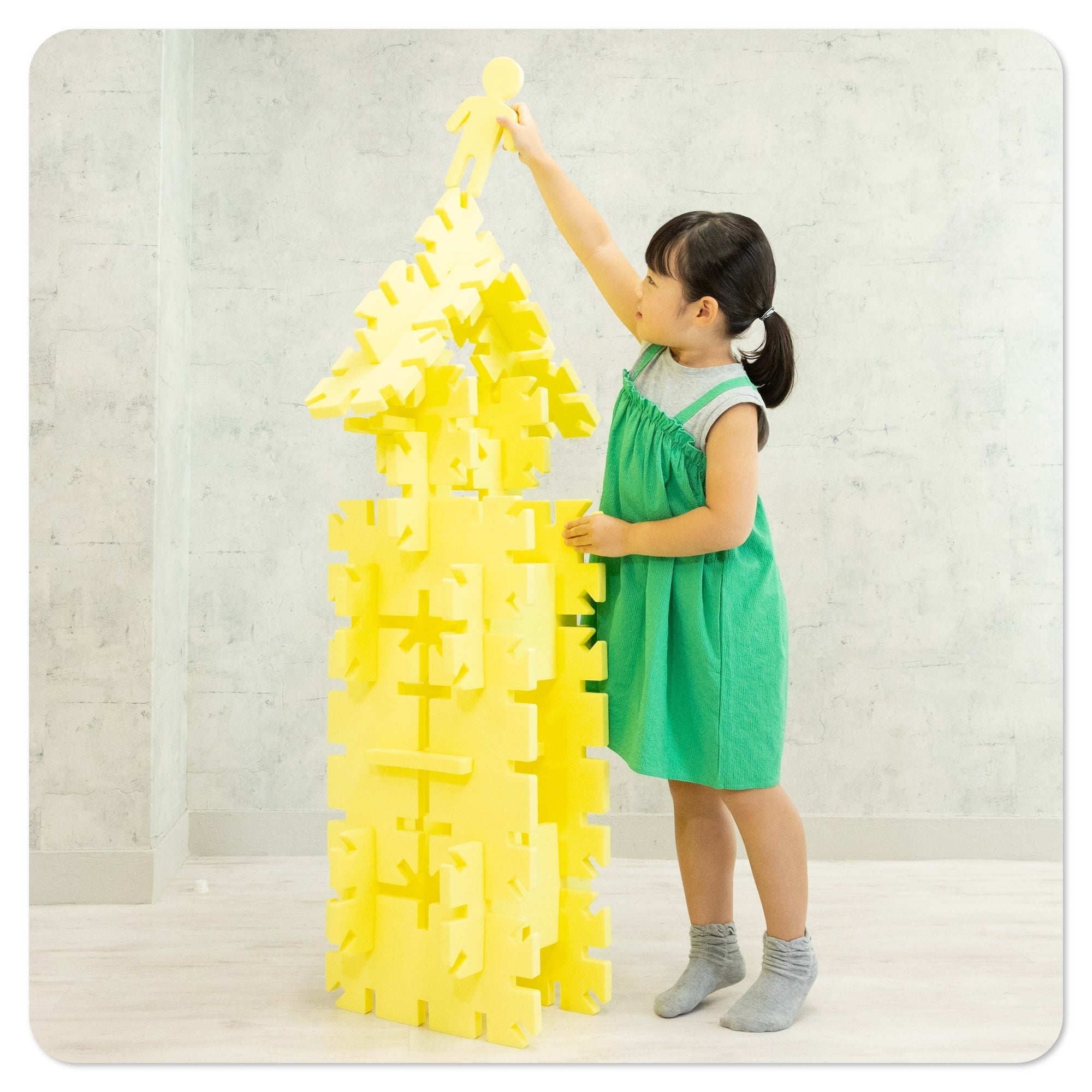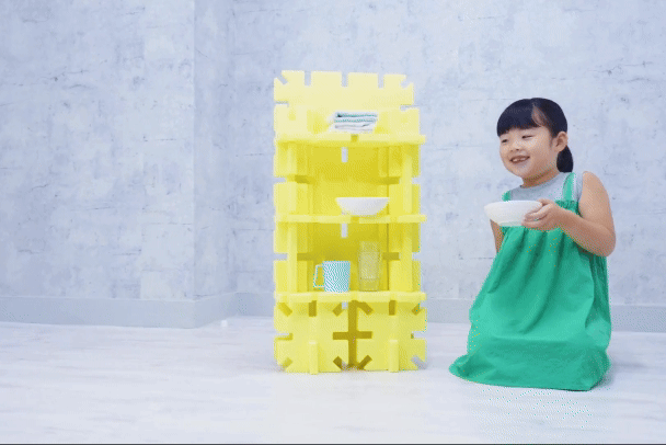 小さい頃、誰もが一度は夢見た特大サイズのブロック。組み立てた作品は子どもの身長を超えるサイズで、家を作れば自分だけの秘密基地に!