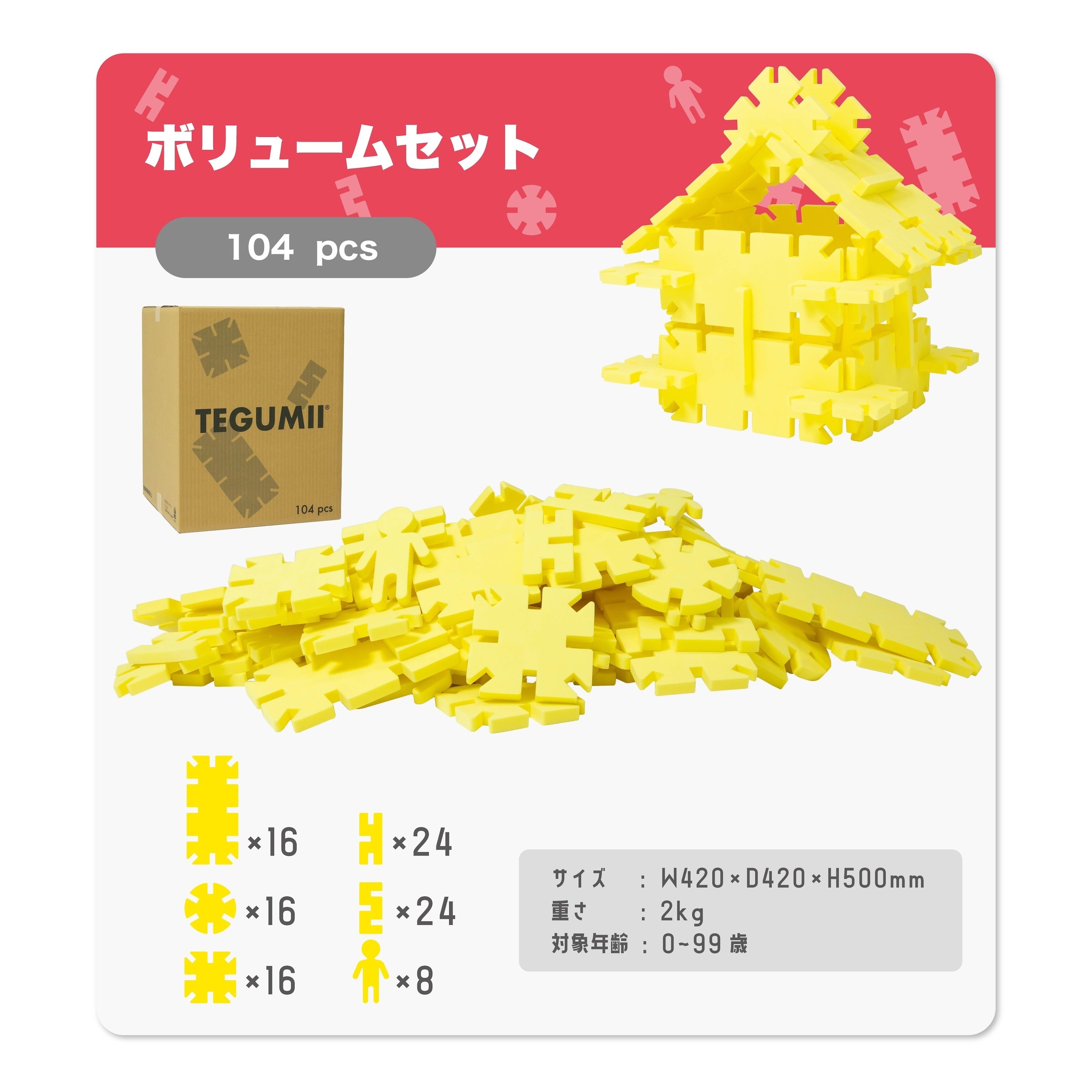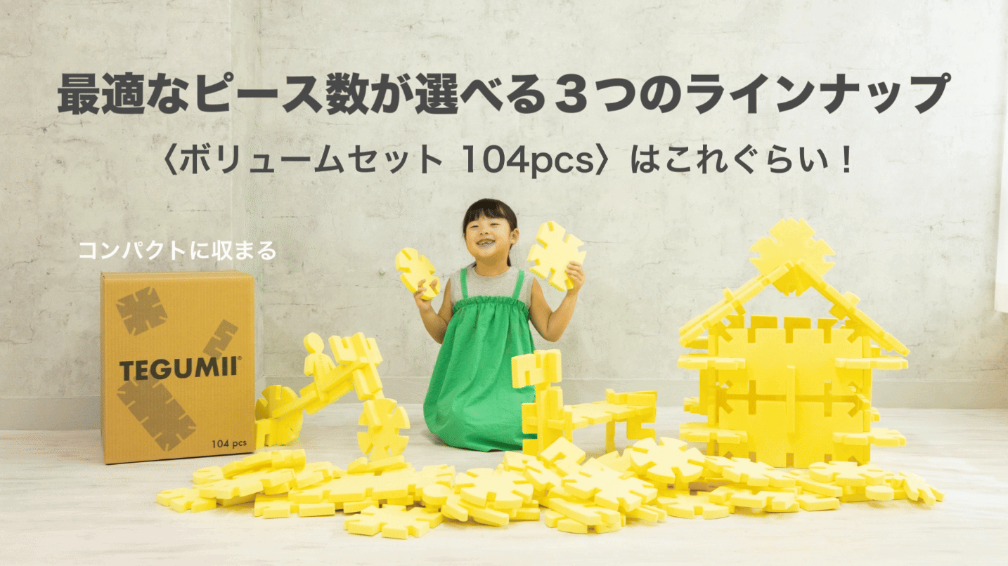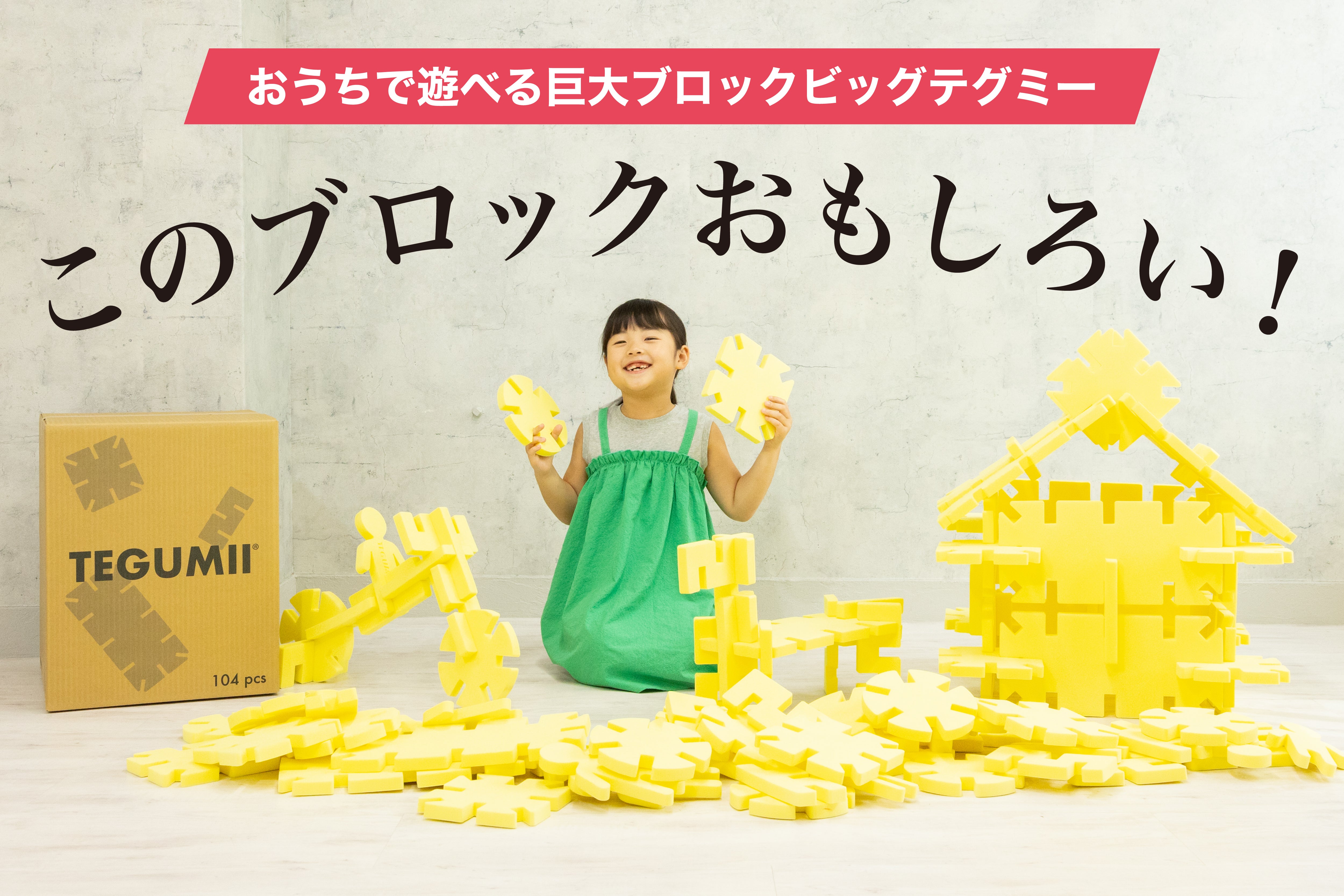 「ビッグテグミー」はその新ラインナップです。ビッグなパーツが生み出す、ダイナミックな面白さが魅力。秘密基地を作ったり、おままごとに使ったり、使い方は十人十色。ご家族みんなで試行錯誤に夢中になってください。