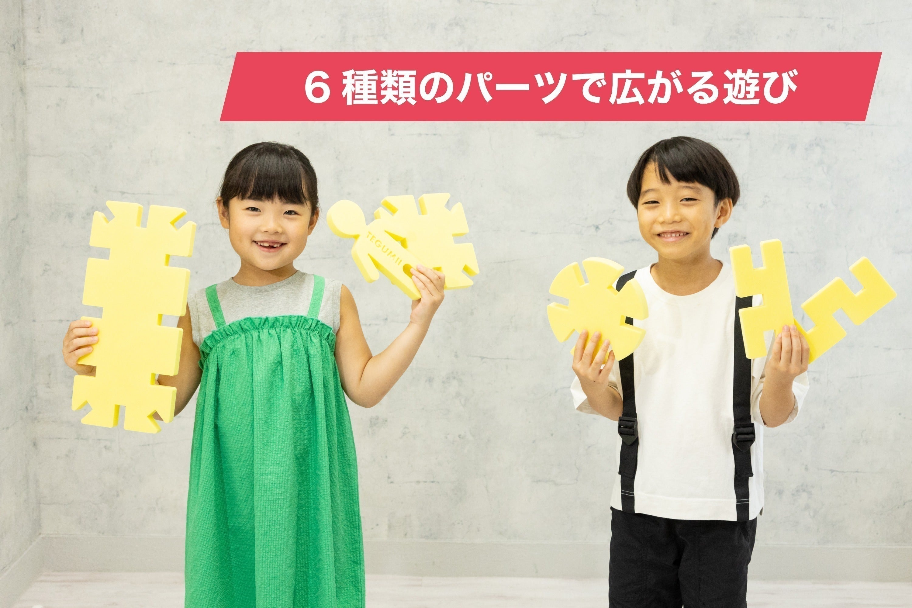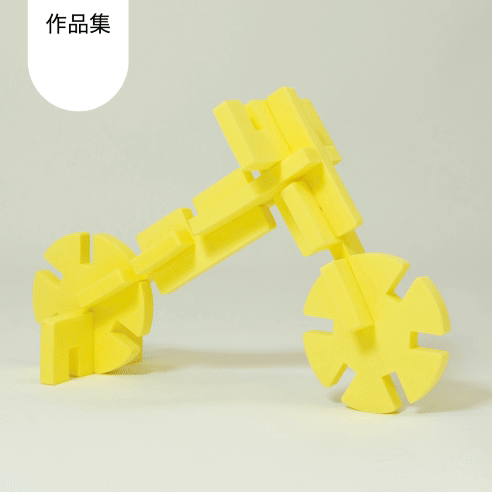 緻密に計算された6種類のパーツ。それぞれのパーツに互換性があるため、組み立てられるものは無限大。素材に使用しているEVAはスポンジのように柔らかいので、小さい子どもでも安心して遊べ、組み立てた時にはしっかりと組み上がる頑丈さです。パーツのサイズや厚みにもこだわっており、小さな子どもから大人まで、どんどん組み立てていくことができます。