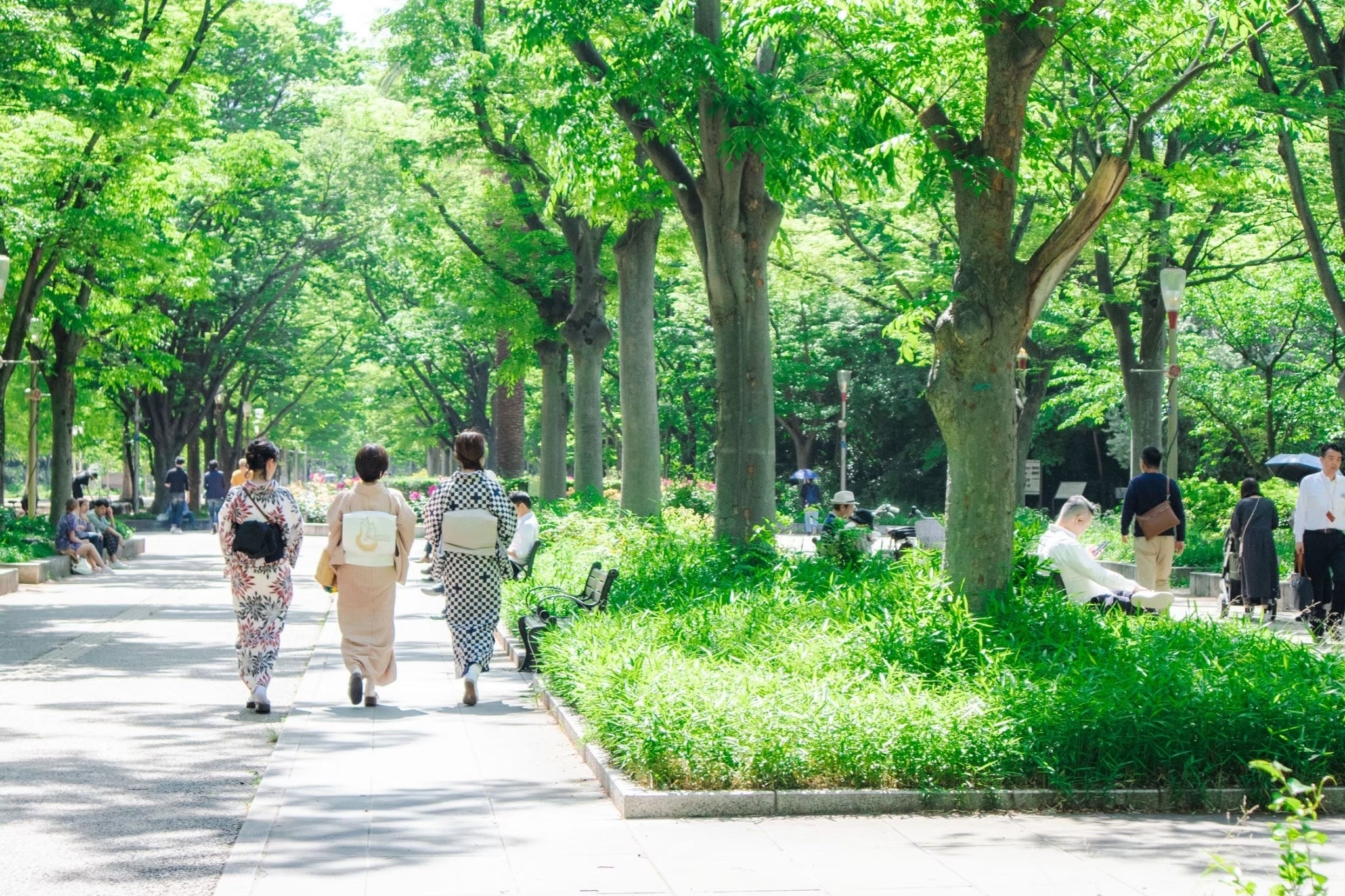 2023 年 1 月から毎月 1 回、「着物 DE おでかけ」イベント等を開催しています。 大阪の由緒ある場所に着物を着て出掛けて、お茶を楽しんだり、撮影を楽しんだり。夏には、 浴衣の着付け教室から、浴衣でおでかけ、着物デザイナー渋谷幸子先生による講座など