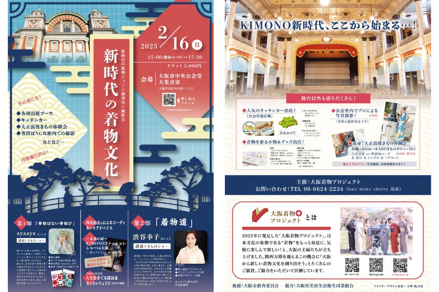 2025/08/02 19:382025/02/16『新時代の着物文化』にご支援いただきありがとうございました。私達、大阪着物プロジェクトは『新時代の着物文化』が大盛況に終え、多くの方々に着物の気軽さをお伝えすることが出来ました。本当にありがとうございました。 メイキング映像を作ってもらいました!!(プロフェッショナル仕事の流儀のオマージュになっています(^^))当日お越しできない方々にも沢山ご支援いただきありがとうございました!このように当日も掲載致しました。2025.02.16新時代の着物文化(ホームページ)そしてこの度、協力を頂戴した大阪府美容生活衛生同業組合が8月25日(月)関西万博にて『美とファッションの歴史をめぐり、未来を創る 』 STAGE SHOW を開催します。そのショーのオープニングに大阪着物プロジェクトが出場します。普段は見れない各へアサロンのショーや美容組合の講師によるショーもあり盛りだくさんで見ごたえのあるショーのオープニングをさせていただくことになり、とても身が引きしまる思いです。これも、皆様のおかげです。ご来場いただけましたら幸いです。開催日時 8月25日(月) 17時開始 場 所 関西万博会場内 フェスティバルステーション主 催 大阪府美容生活衛生同業組合 もっと見る