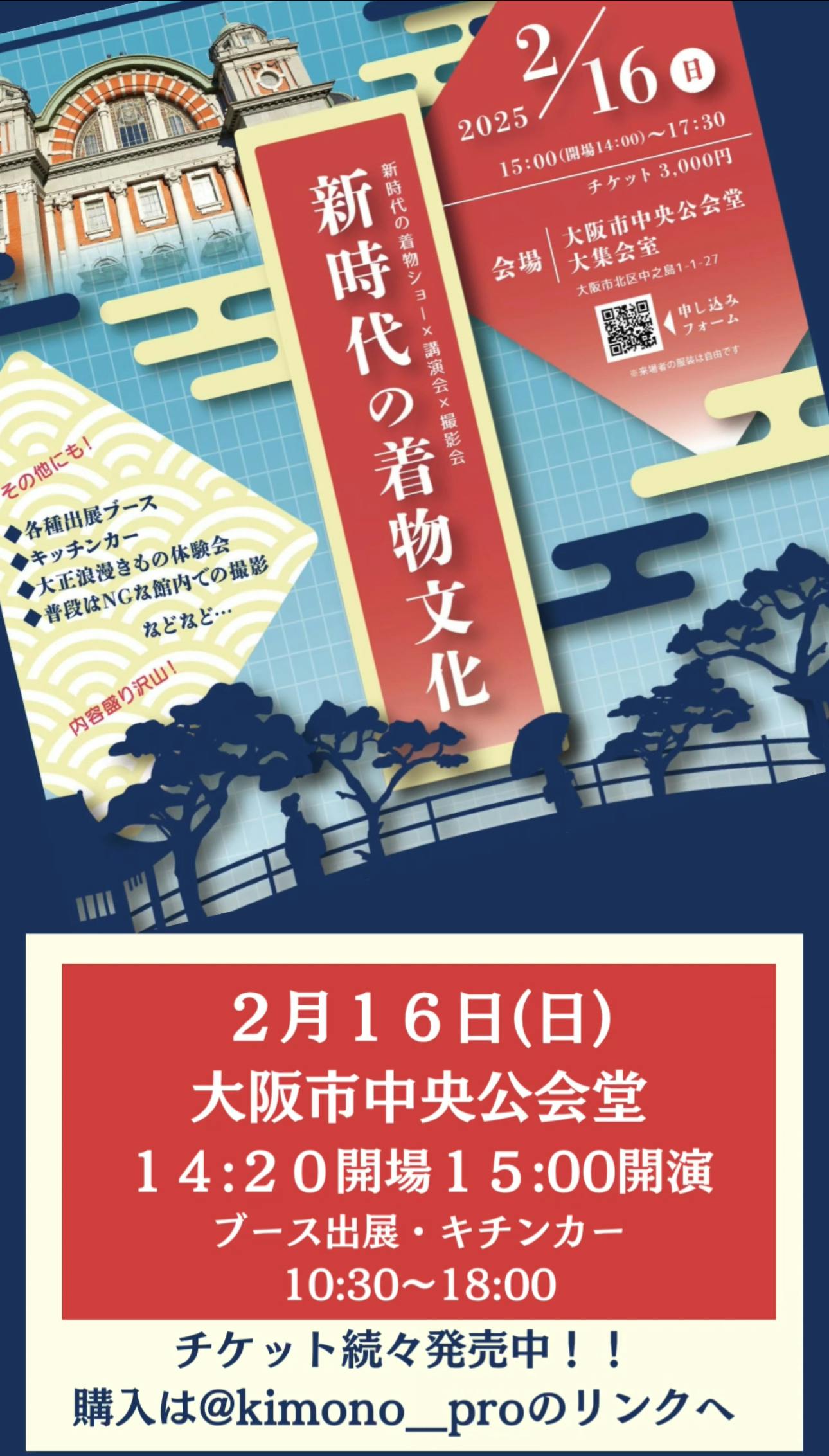 「新時代の着物文化」イベントを開催2025年2月16日(日)開場14時20分 開演15時~17時半大阪市中央公会堂 1000名募集 チケット:3,000円