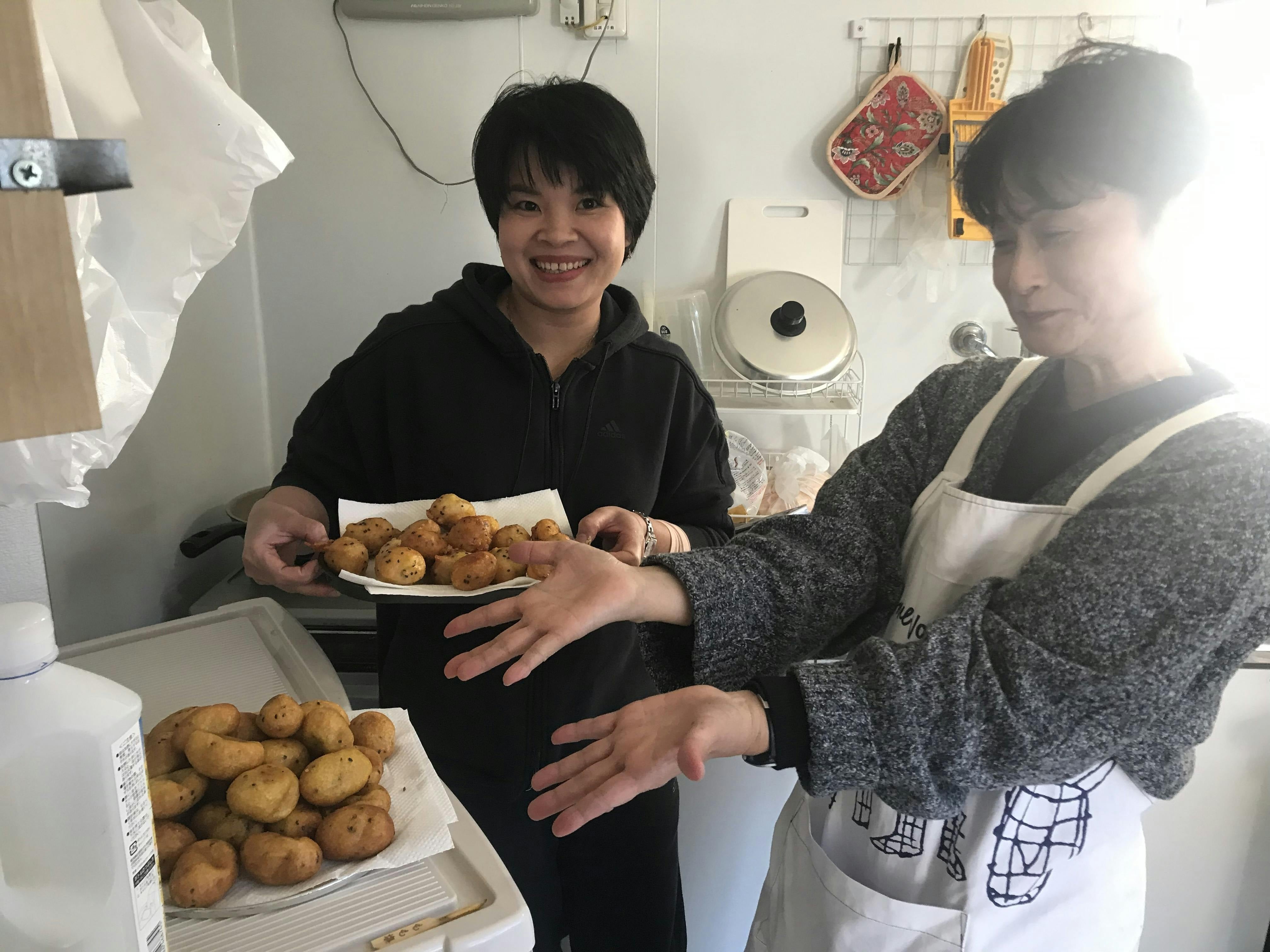 頂いた芋でベトナム人のフォンさんが、ホットケーキのようなお菓子(ベトナムの揚げサツマイモクレープ「バイン・クアイ・ラーン・ラン"Bánh khoai lang rán"」)を、作ってくれて大好評でした。
