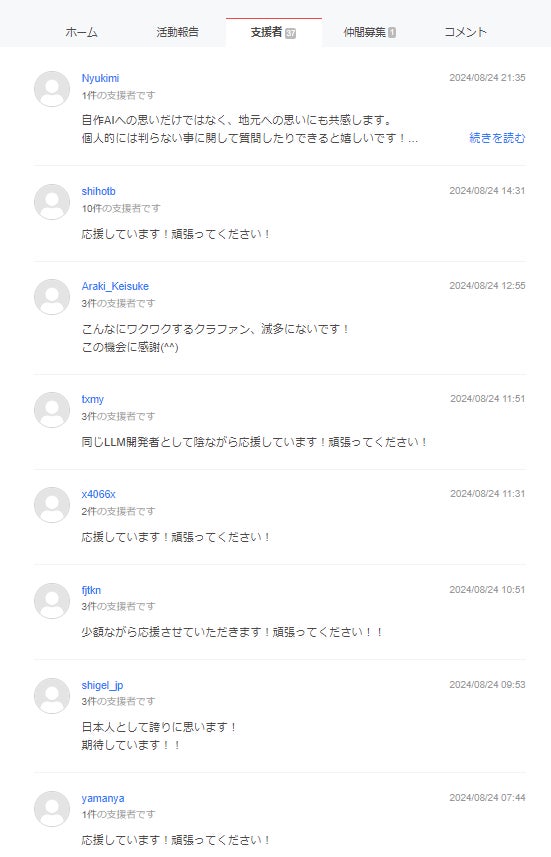 そして何より、このプロジェクトを支援してくださる皆様の存在があります。