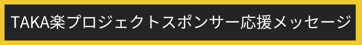 ご支援いただいた資金は、TAKA楽プロジェクトを推進するための予算として大切に使わせていただきます。また総支援金額の「17%+税」はクラウドファンディンサイトCAMPFIREの掲載料として納入いたします。