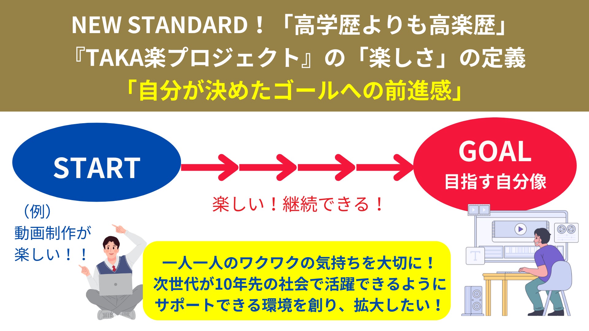 これまでの受験勉強に軸足を置く考え方から脱却し、「高楽歴」という新しい概念を中心に据えた教育システムの構築を実現したいのです。
