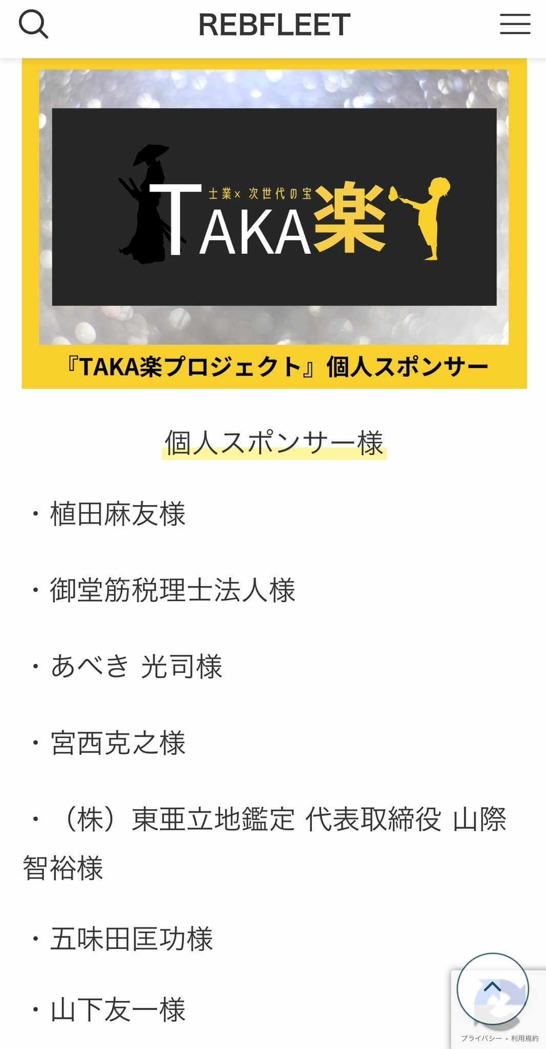 TAKA楽プロジェクトへ協賛いただきありがとうございます!