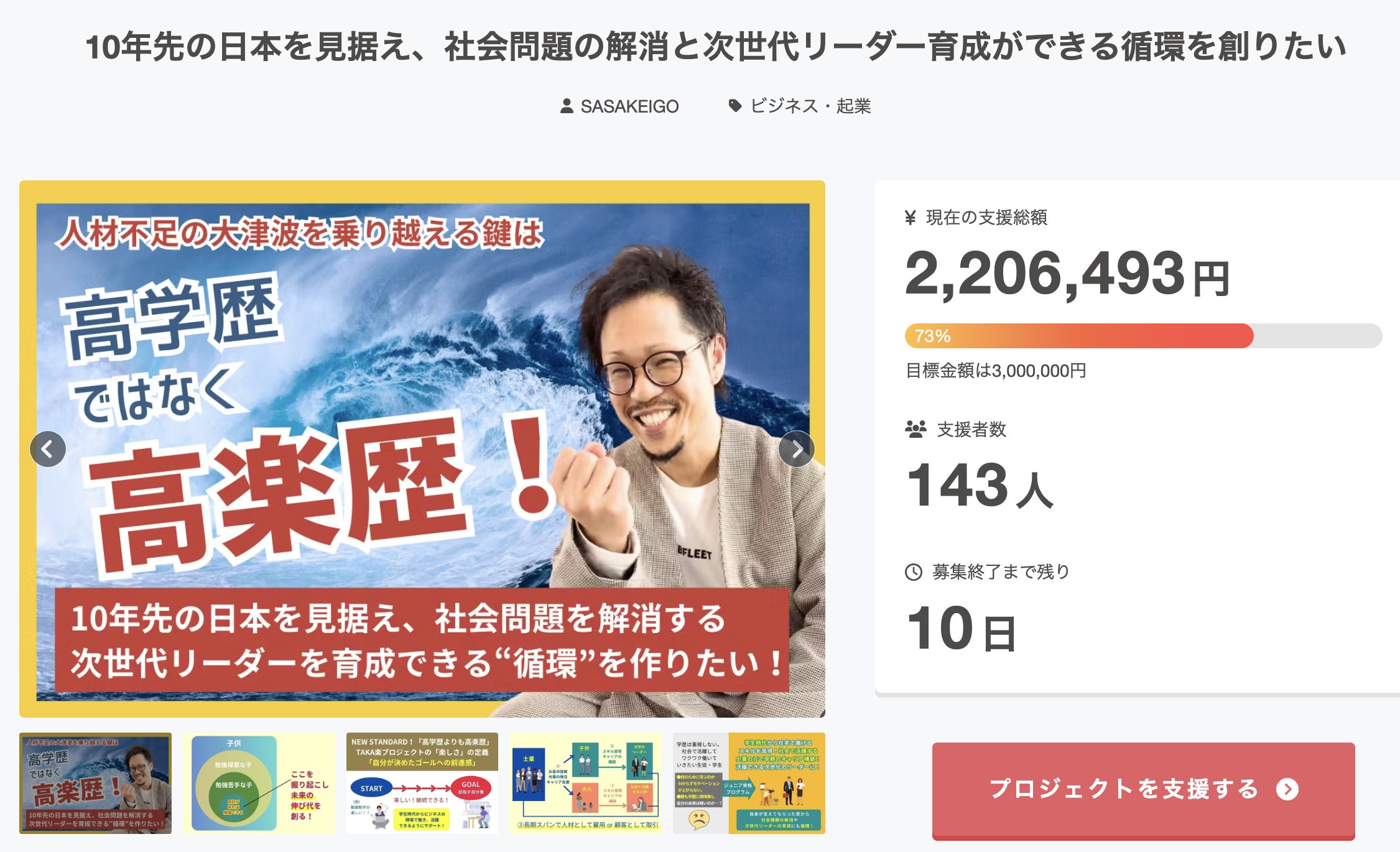 引き続き、10年先の日本を見据え、社会問題解消と次世代育成の循環を創るため、共に取り組ませていただけると嬉しいです!