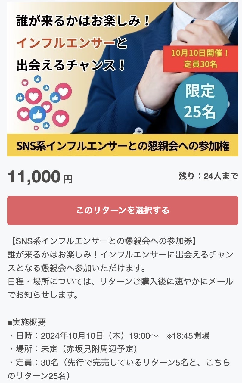 貴社名や代表のお写真、ロゴなどを入れた「オリジナルのリターン」を作ってプロジェクトページ内に公開することも可能です。