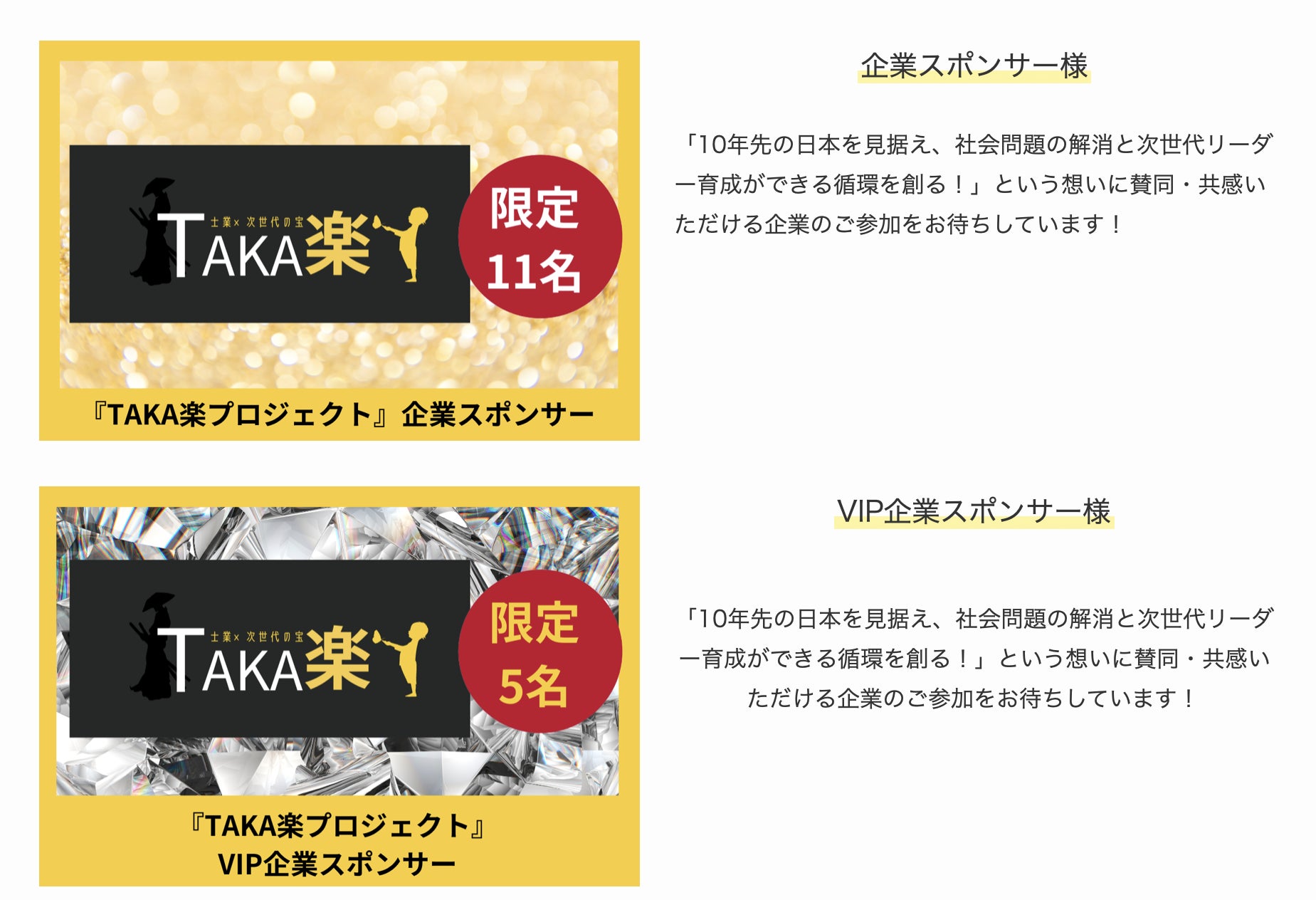 TAKA楽プロジェクト協賛スポンサーの皆様
