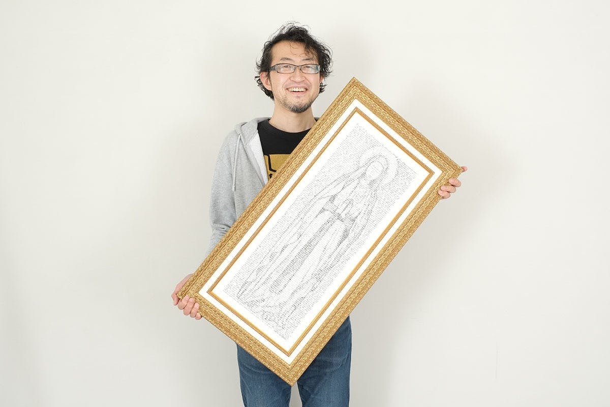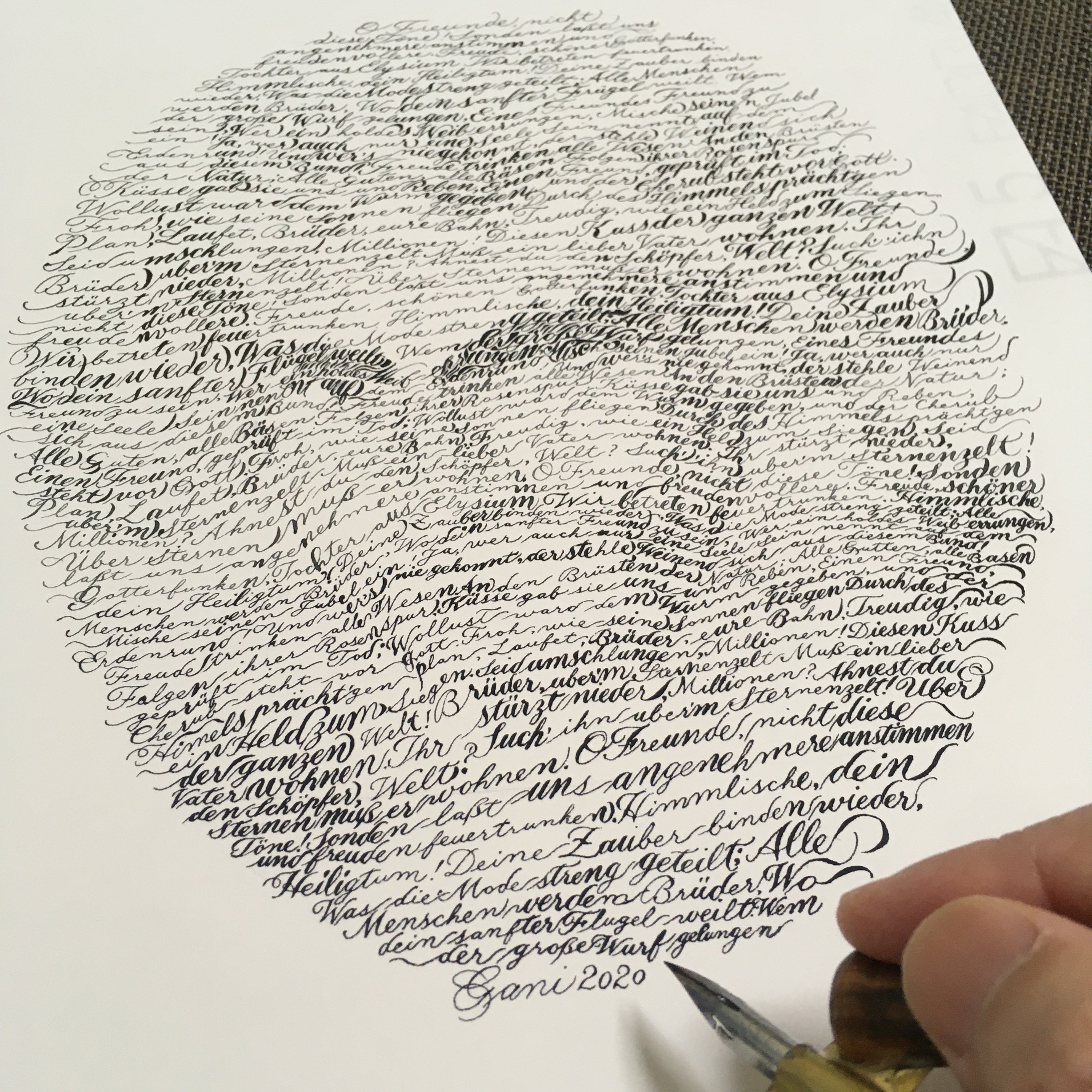 初の文画作品(交響曲第九番「歓喜の歌」の歌詞を、ベートーヴェンの肖像画が浮かび上がるように手書きしました)
