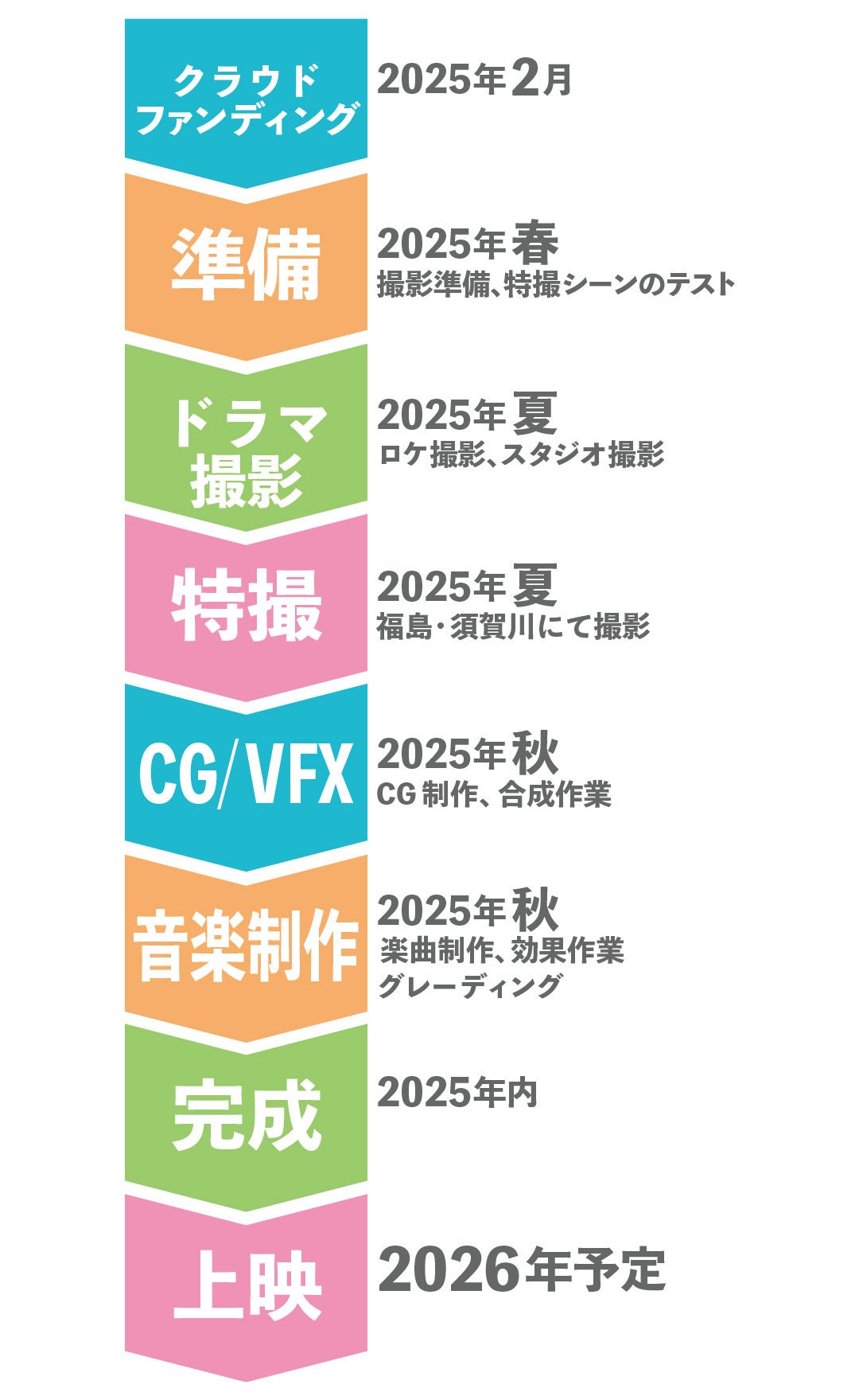 本プロジェクトは All-in方式 で実施します。クラウドファンディングの目標額に満たない場合も、制作規模やスケジュールを調整し、可能な限り高い完成度を目指します。また、皆さまに映画を届けることを最優先とし、責任を持ってプロジェクトを進めます。リターンの履行も実施します。