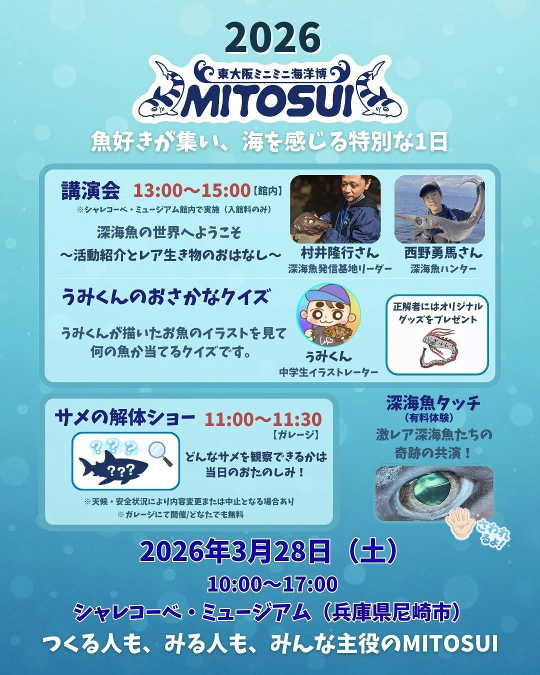 海や魚を身近に感じてもらうイベント、温泉シャークも応援しています!