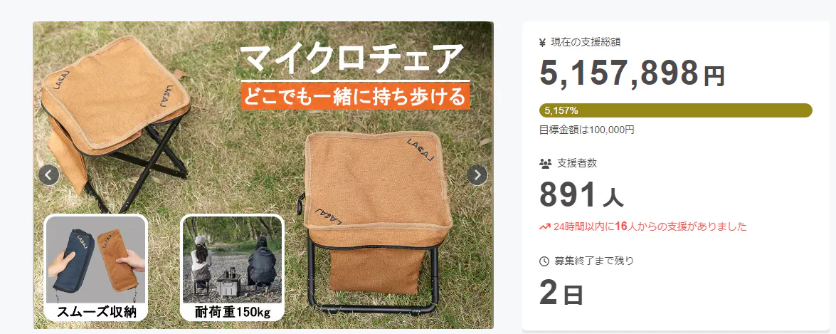 「軽量でありながら快適な座り心地を実現、バッグに収まる持ち運び便利なマイクロチェア 」プロジェクトへのたくさんのご支援、誠にありがとうございます。