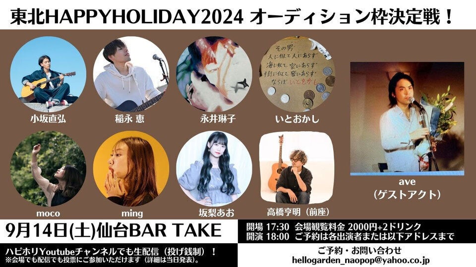 10月27日(日)仙台・西公園にて開催させていただく無料アコースティックフェスティバル「東北HAPPYHOLIDAY2024」を一緒に作っていただけたらとても励みになります。"好き"を信じて、一緒にドキドキしましょう!