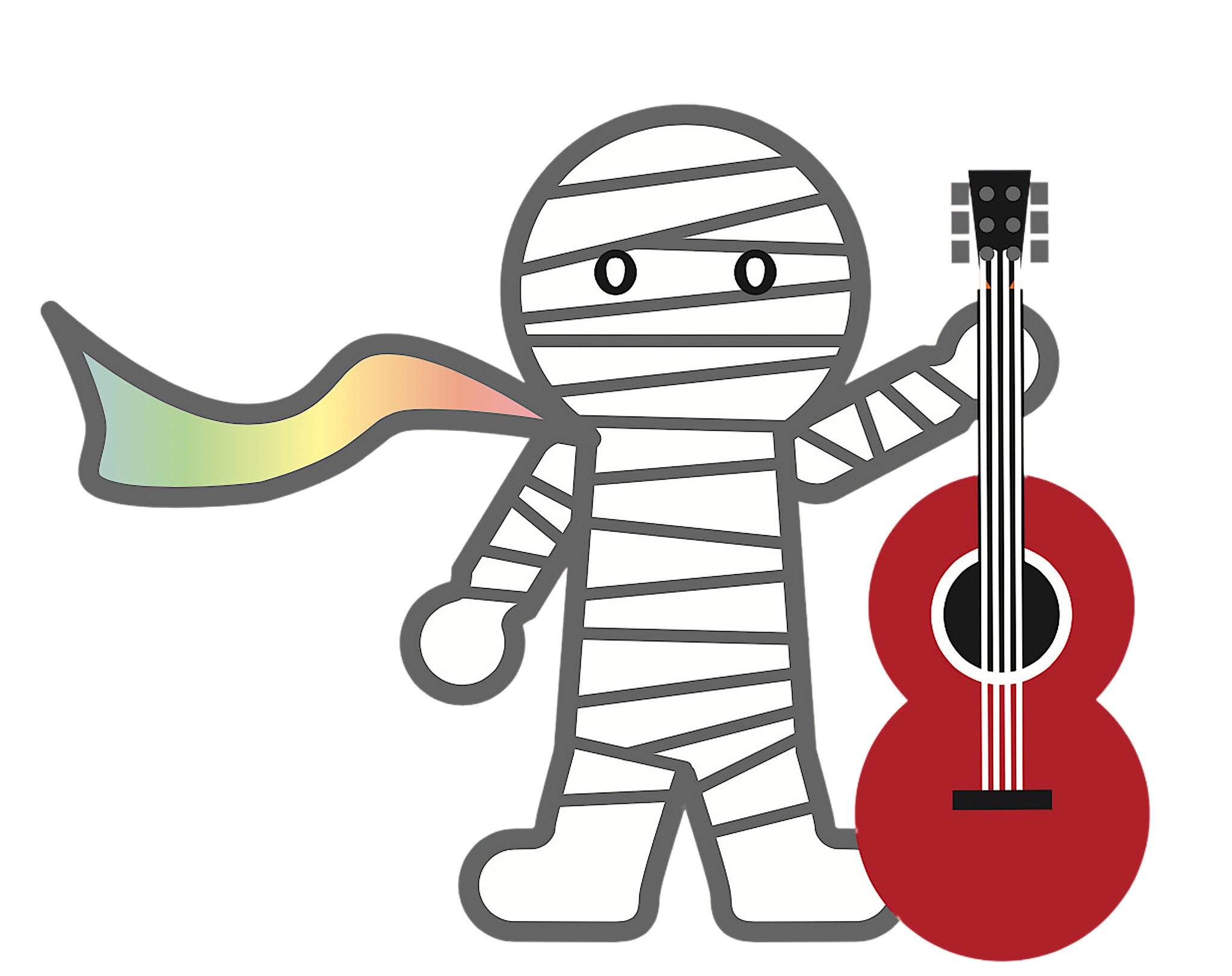 「包帯のつよしさんをシンプルにキャラクターのようにしました。包帯がスカーフのようにたなびいて、虹色の夢につながるリボンのようにしました」(デザイナー談)