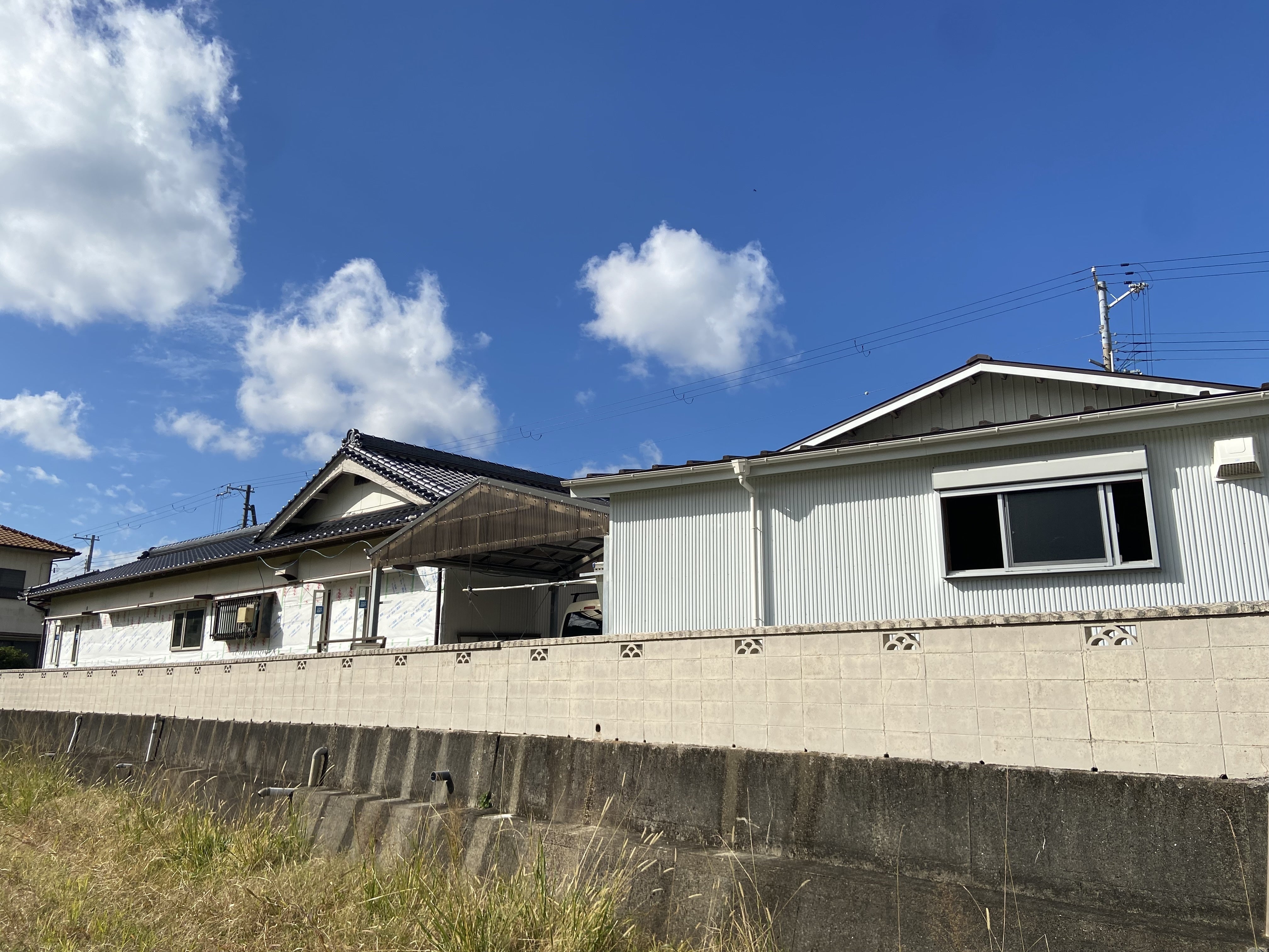 右側が離れで左が母屋。これから母屋側の壁が全面新しくなります!