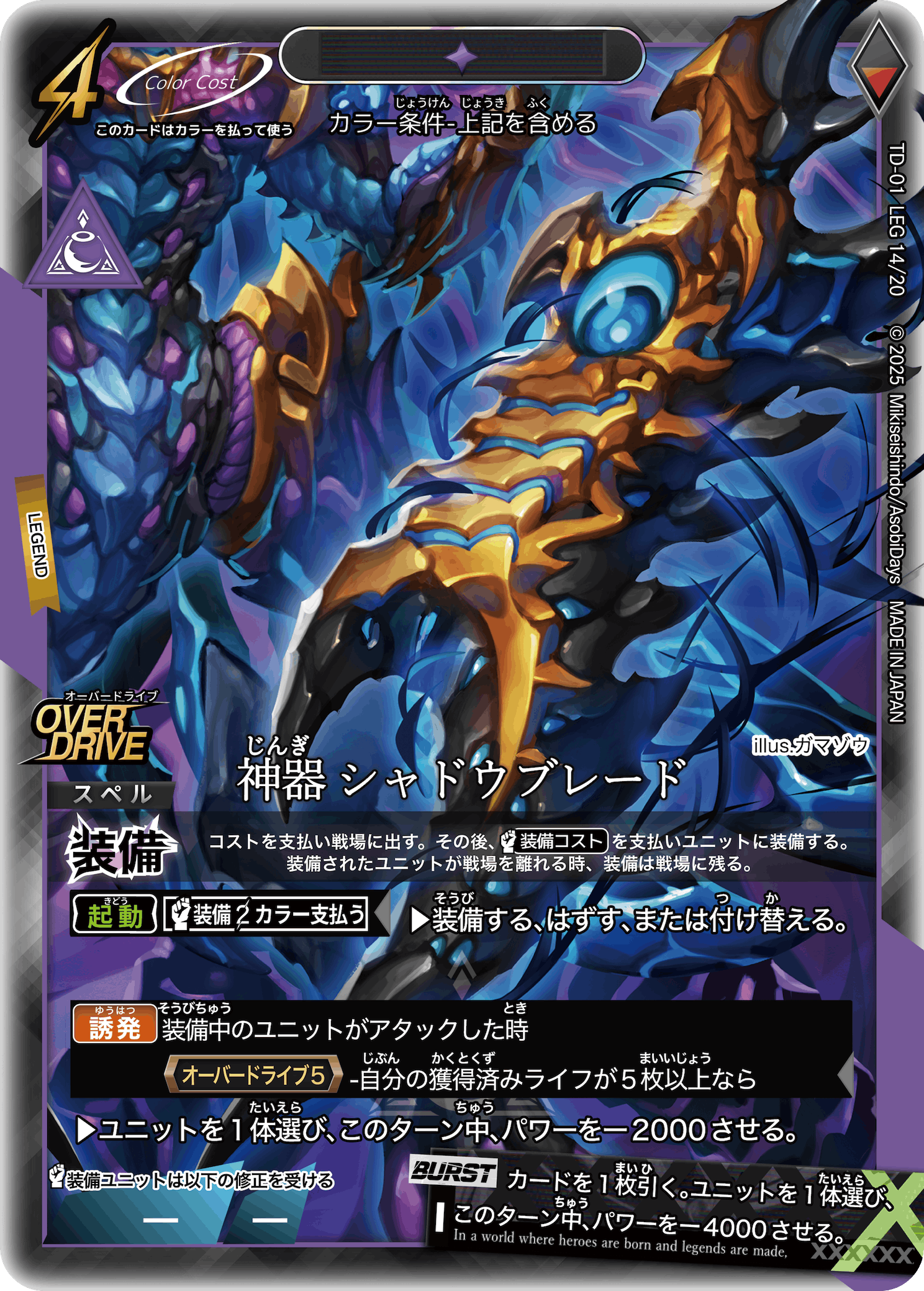 トリニティドラフト ブレイズのレジェンドカード【青&紫】です。