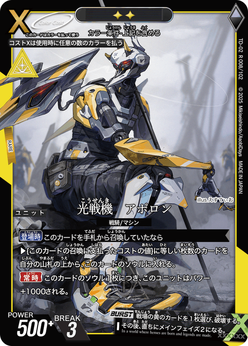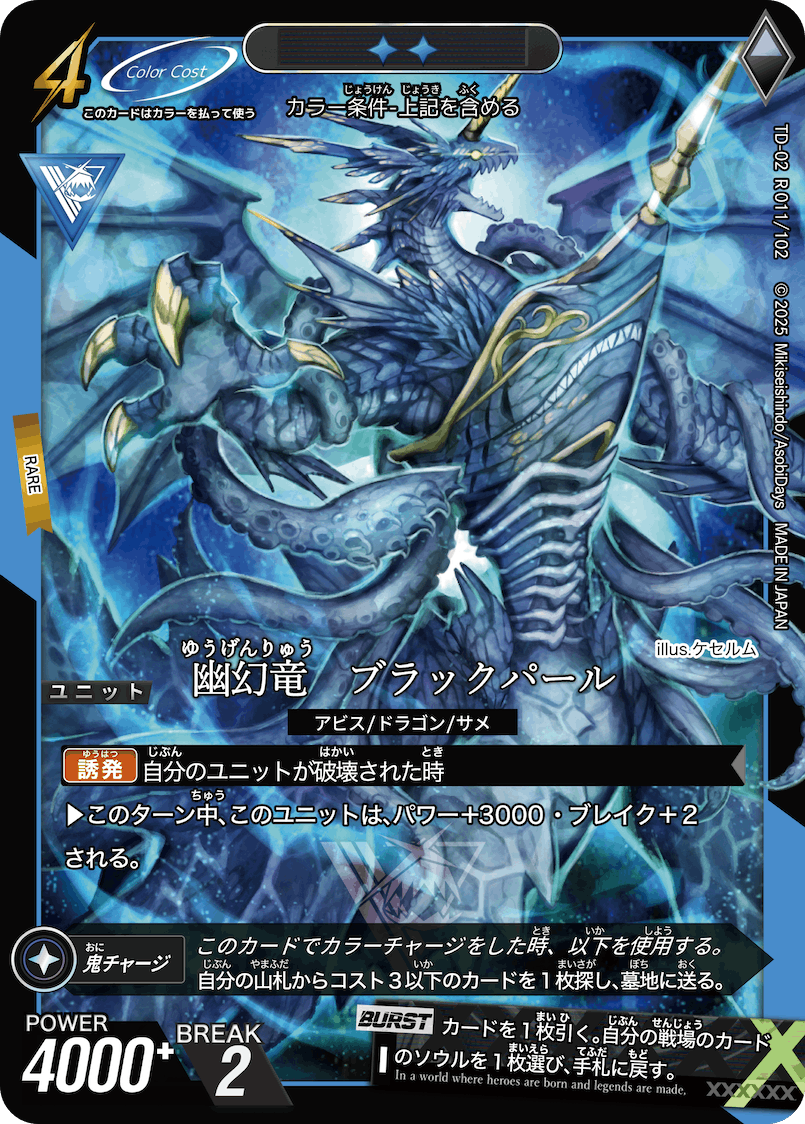 トリニティドラフト ファントムのレアカード【黄】&【青】です。前回のギャラリー更新時にご紹介できていなかったカードも、今回あわせてお届けいたします。
