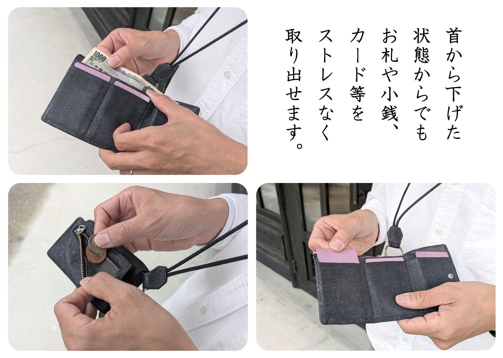 ▲ちょっとしたお出かけや、旅先でのセカンドウォレットとしてお使いいただけます。