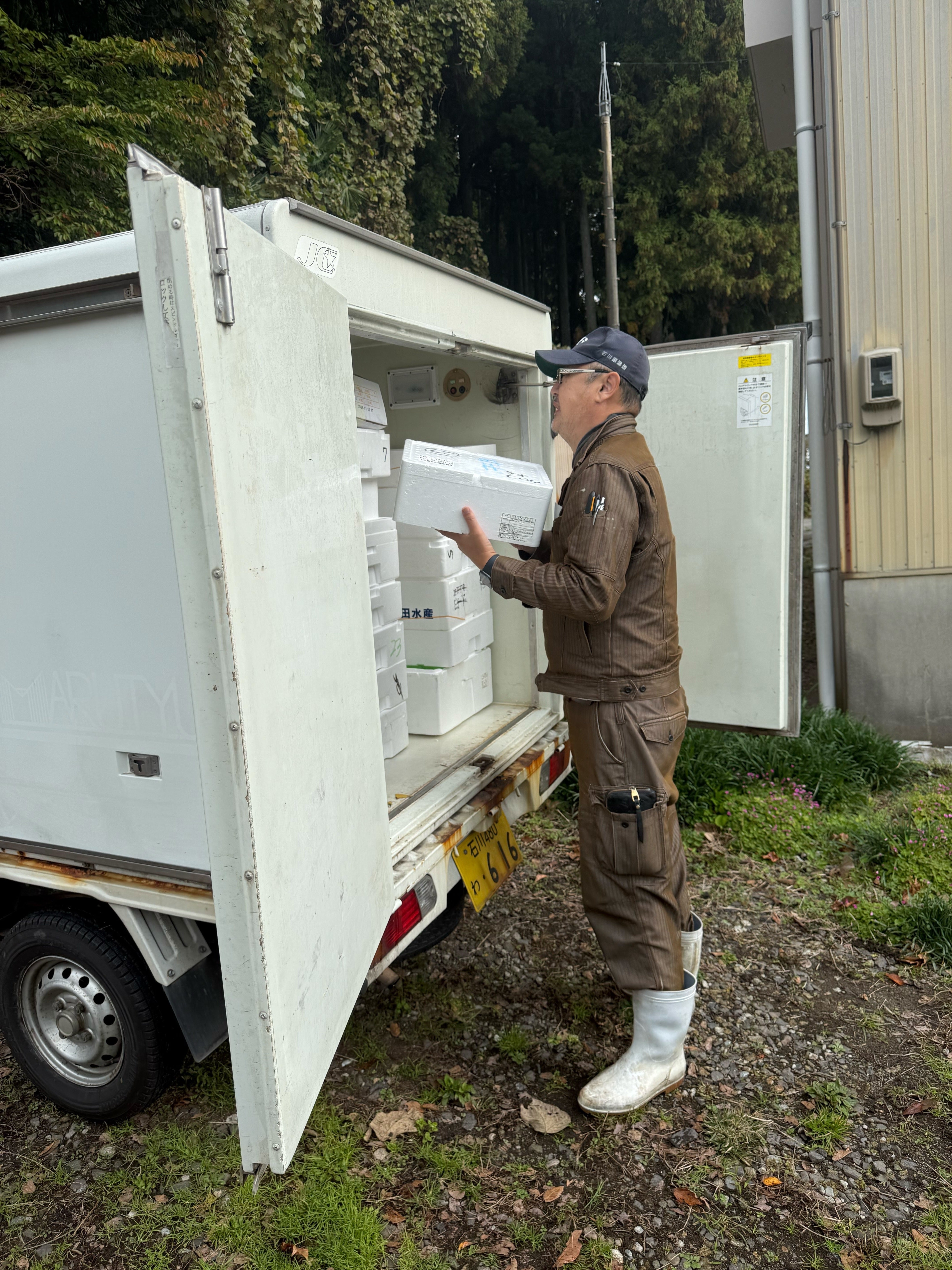 日々、夜中の1時前に能登から金沢へ出発、午前2時30分から3時くらいに金沢に到着し、1時間〜1.5時間ほど買いつけ、午前5時前にでて、8時に配達という昼夜逆転のスケジュールでがんばっています。