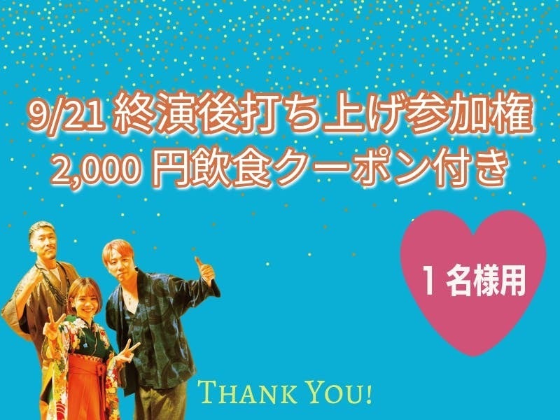 5.9/21 終演後打ち上げ参加権2名分(2,000円×2枚飲食クーポン付き)<10,000円>