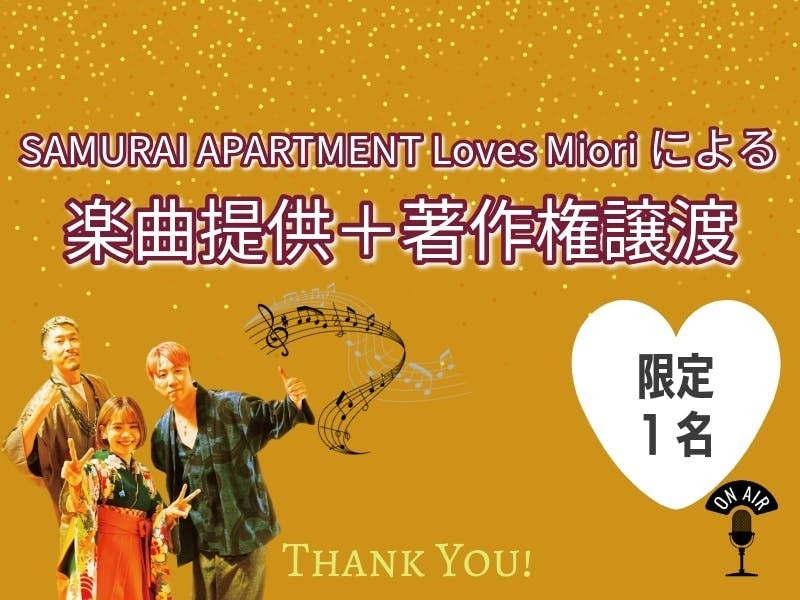 10.SAMURAI APARTMENT Loves Mioriによる楽曲提供+著作権譲渡<50,000円>※限定1名