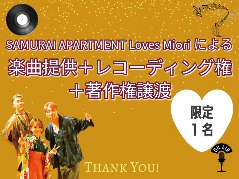 11.SAMURAI APARTMENT Loves Mioriによる楽曲提供+レコーディング権+著作権譲渡<100,000円>※限定1名